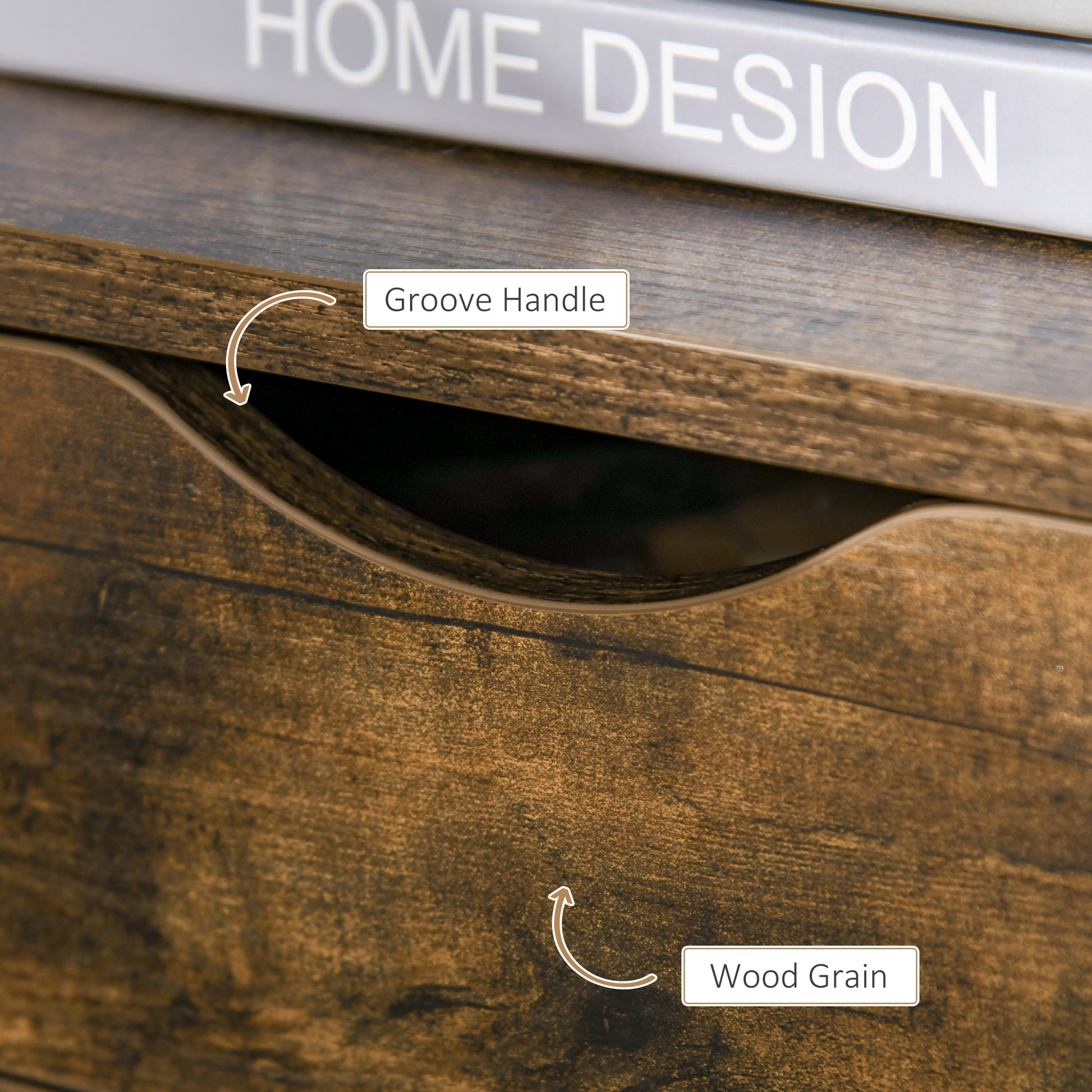 Industrial-style just stepped up: this HOMCOM side table. A two-tone dark wood-effect design, paired with the matte black frame, gives it a striking and stand-out look, for a point of difference in the home. Comes with two bottom drawers, an open shelf and a table top - plenty of handy storage space. The frame, made from metal is sturdy, with adjustable feet to finish so it always keeps balanced. Why not use a bedside table?