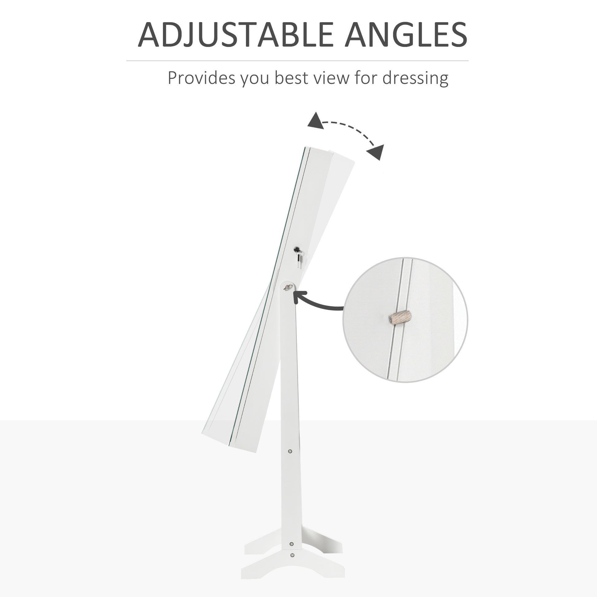 Jewellery Cabinet with LED Light, Lockable Jewellery Organiser with Full-Length Mirror for Bedroom Dressing Room, White