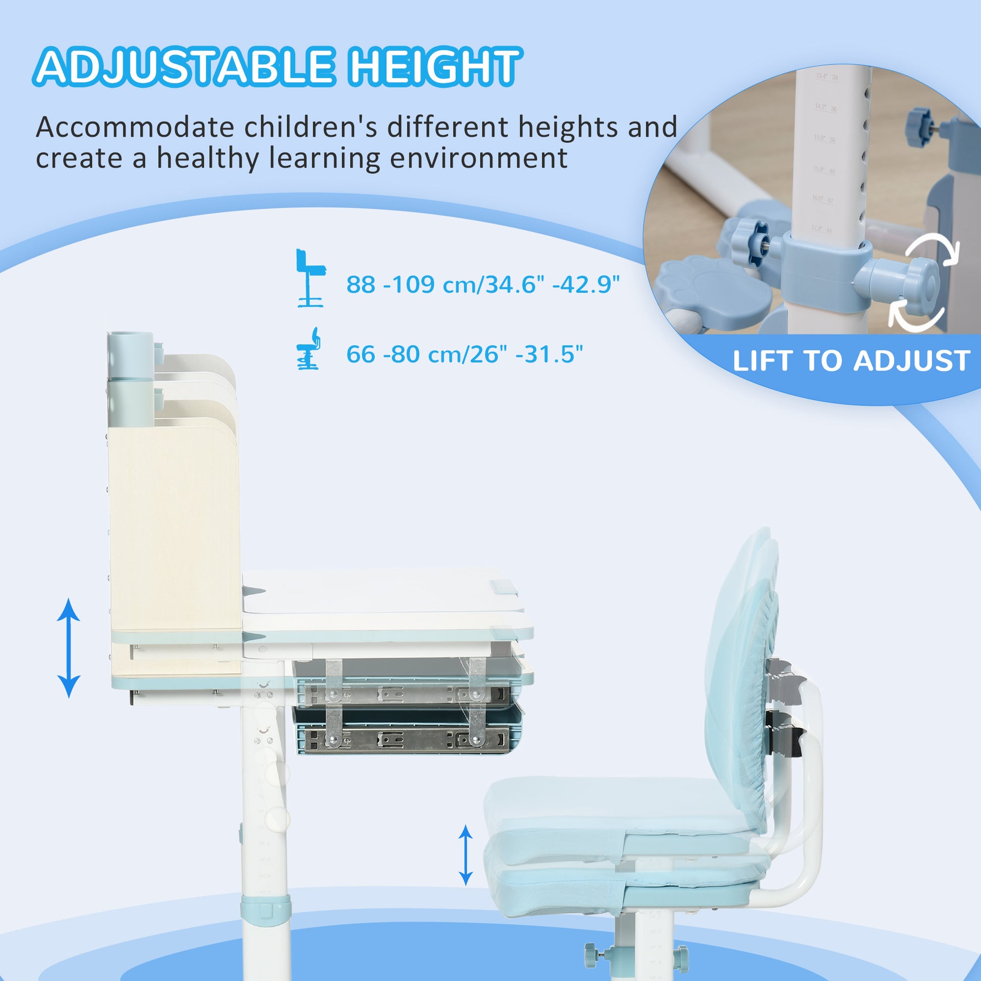 Kids Desk and Chair Set, Height Adjustable School Desk & Chair Set w/ Shelves, Washable Cover, Anti-Slip Mat, for Kids Aged 3-12, Blue