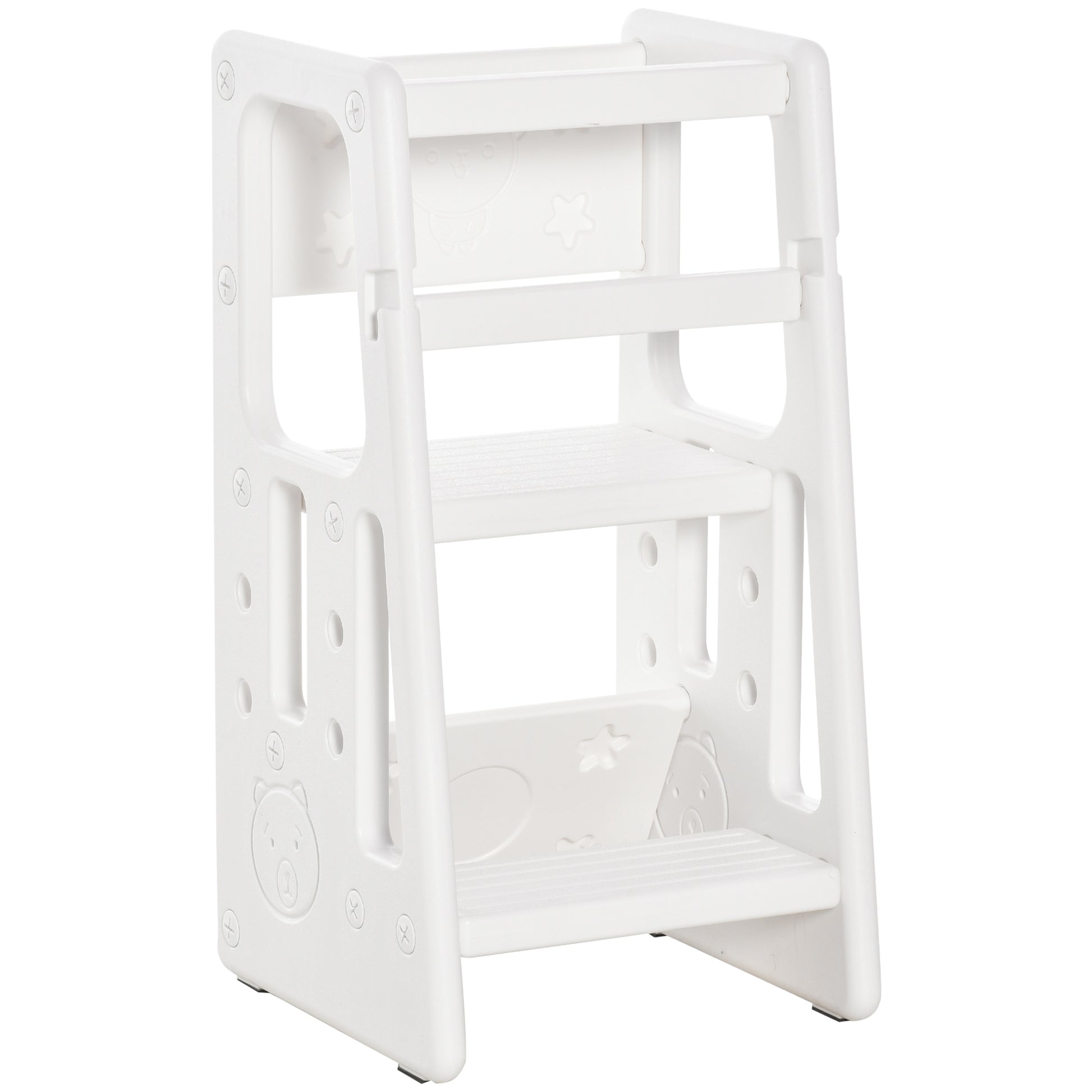 Kids Step Stool Adjustable Standing Platform Toddler Kitchen Stool -Standing Tower for Kids Kitchen Learning w/ Three Adjustable Heights, White