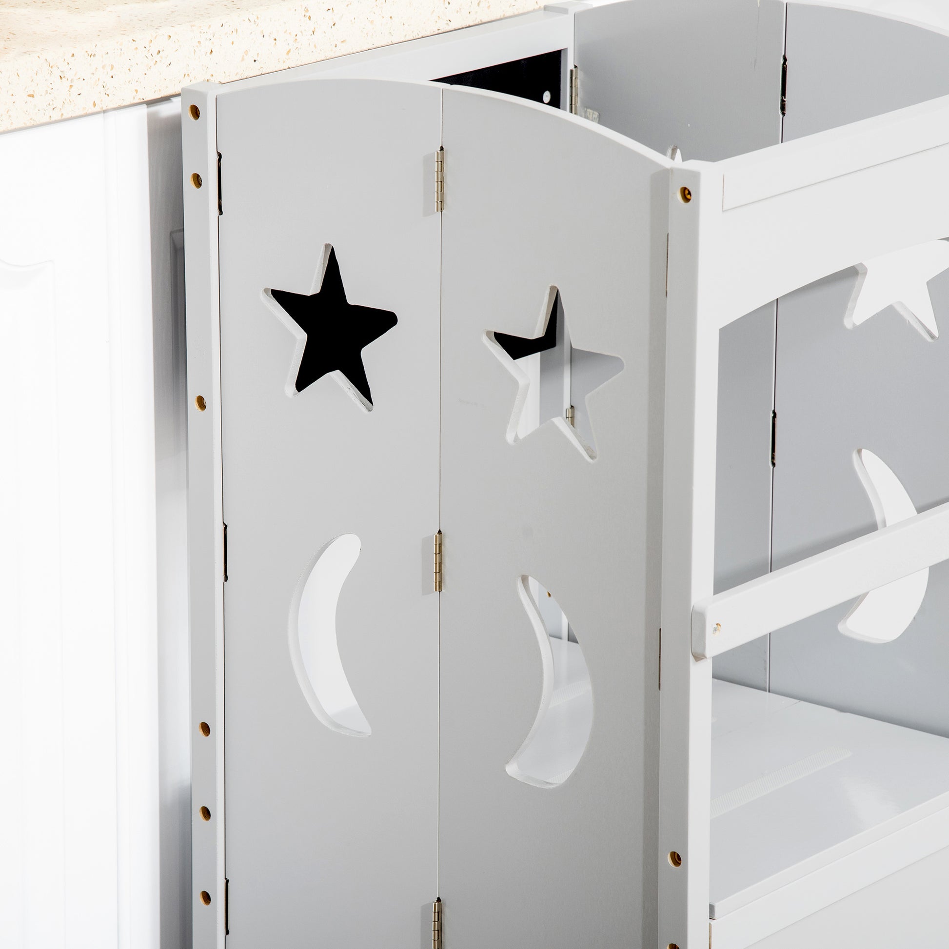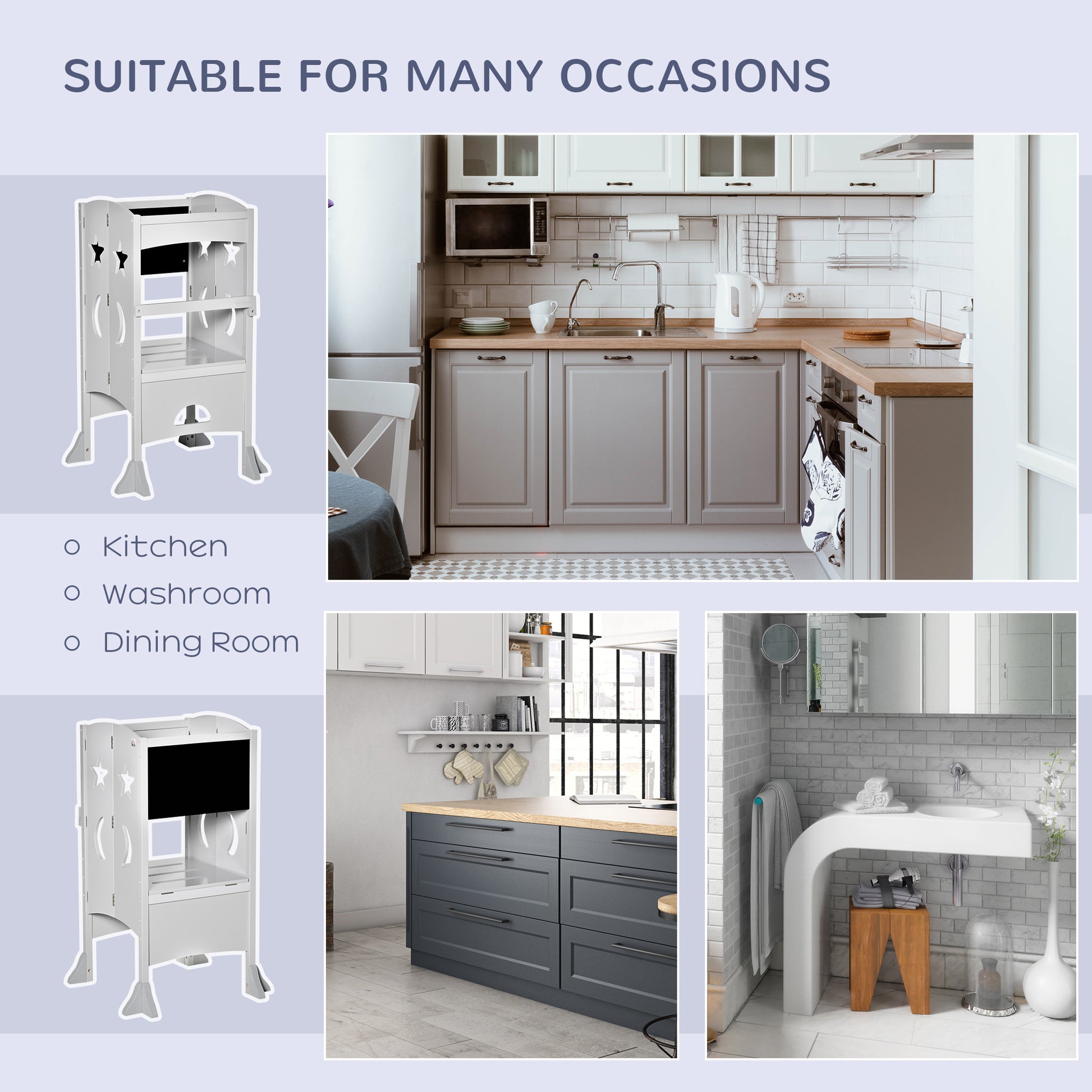 Kids Step Stool Toddler Kitchen Stool with Blackboard Lockable Handrail for Kids Kitchen Counter Grey