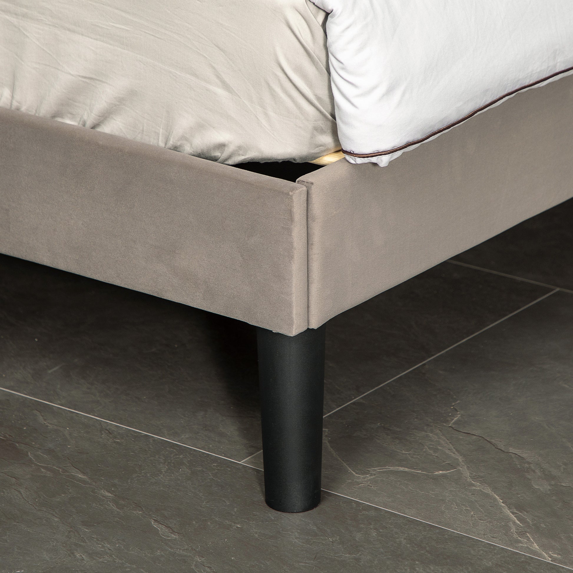 Drift softly into sleep with this HOMCOM king bed frame. The velvet-feel headboard design brings a soft and luxurious touch to bedrooms; set it between five different positions to cater for different mattresses. Thanks to the metal frame for a strong core, it comes with 12 wooden slats to support the mattress in place. Complete with a 20cm under-bed clearance for discreet storage.