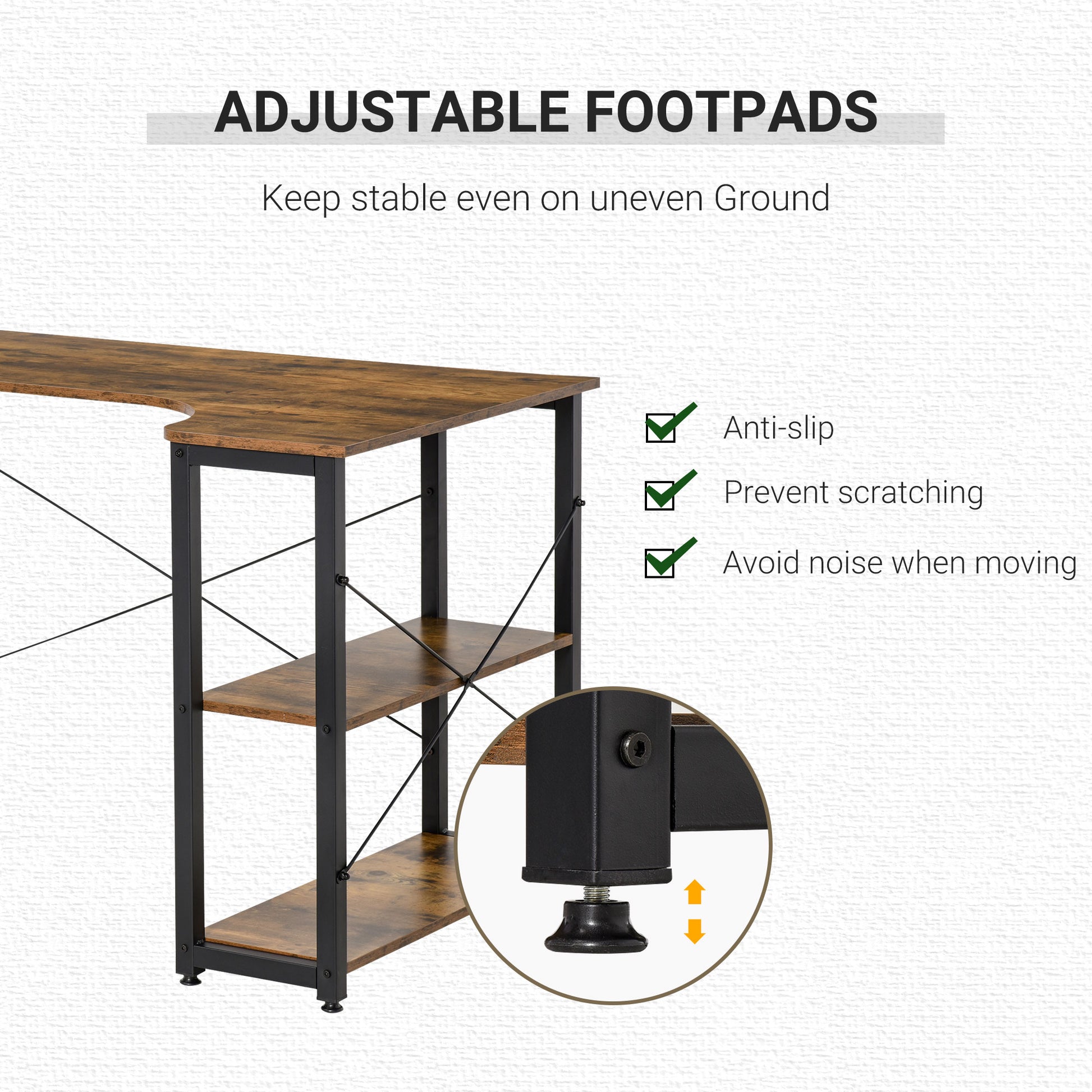 Always feel that there is not enough space? The HOMCOM L-shaped office desk is specially designed for improving space utilization. It makes full use of corner space, which is always ignored in daily life. Combined with 2 side shelves, the computer table can satisfy all your storage needs when you work or study. Create a stylish working station, storage unit, and display case in one with this unique offering from HOMCOM.