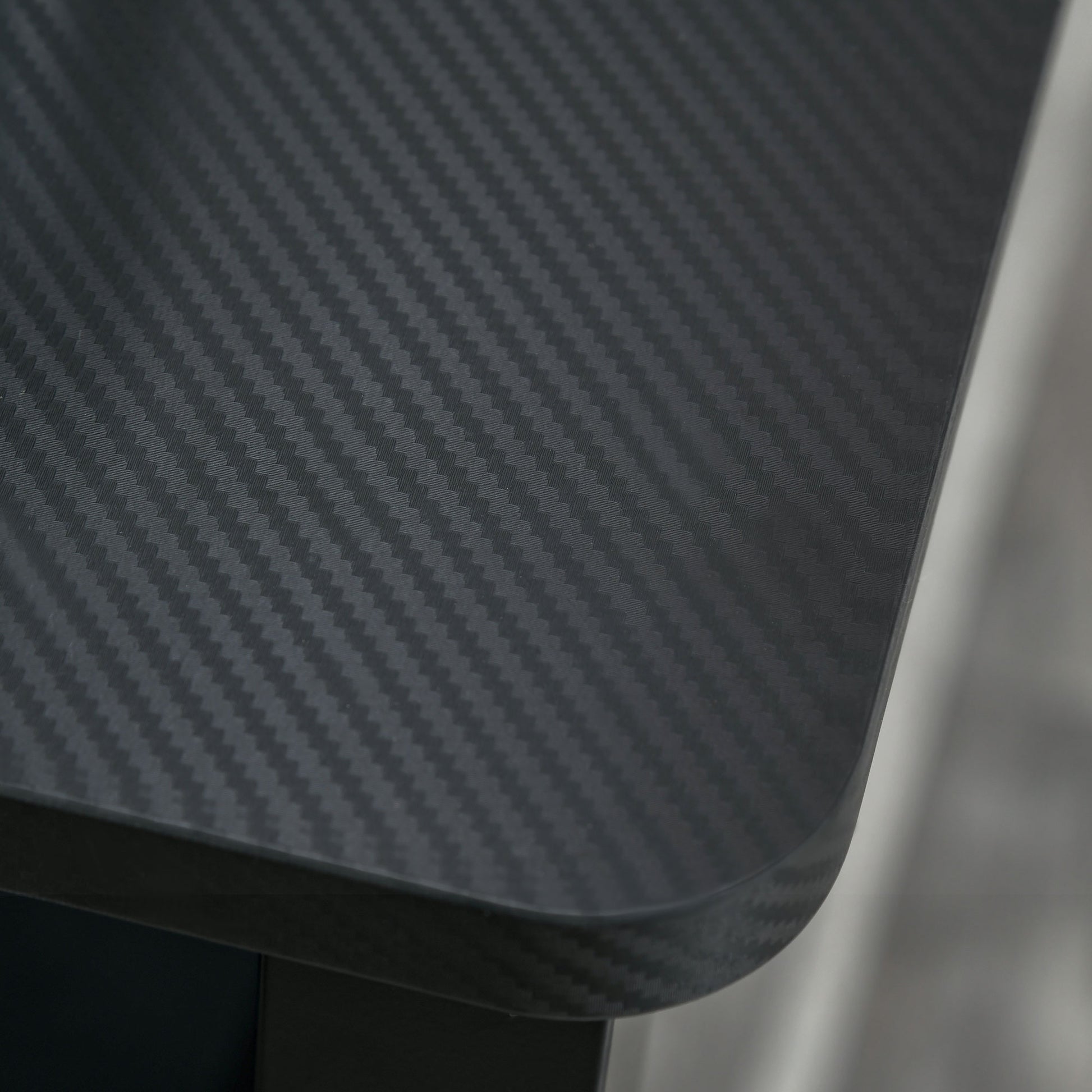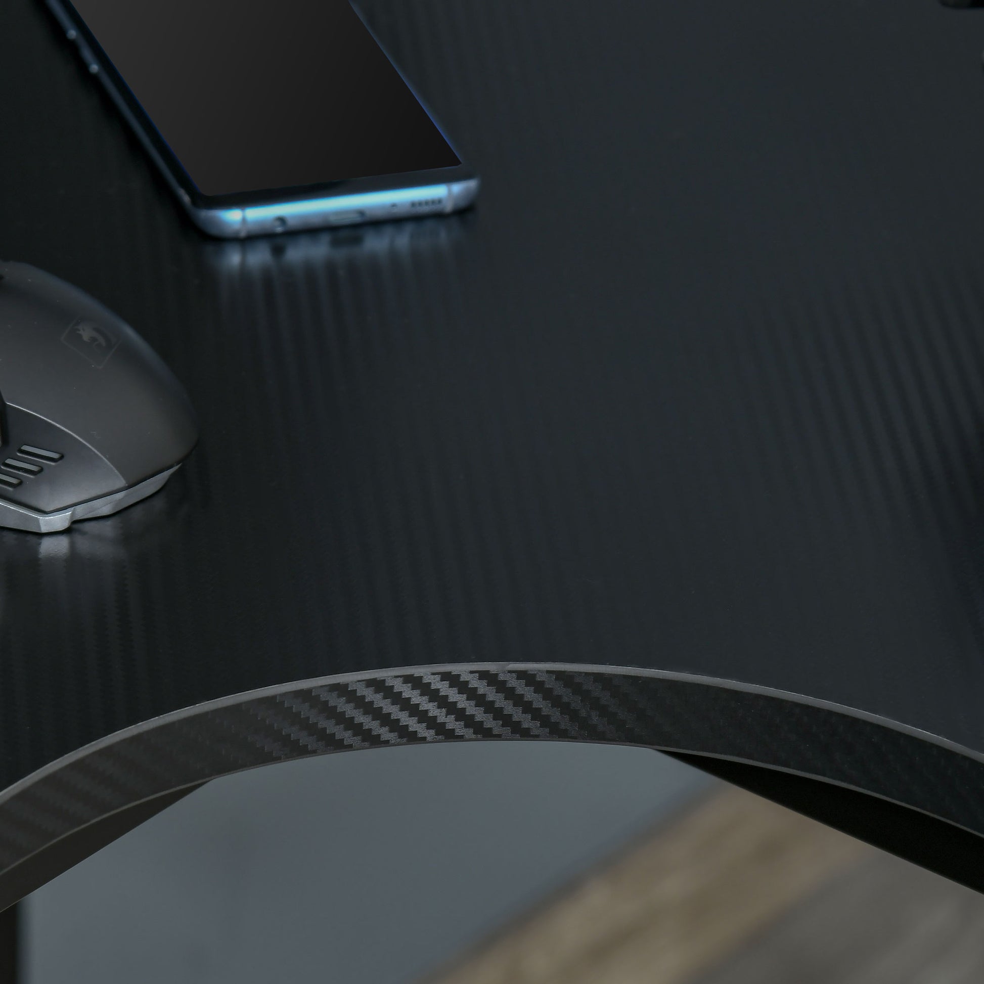 Attention to detail wins games, and trust that this ergonomic gaming desk is built to win. 'L' shape design gives more working space than your average table - room for two screens/monitors, keyboard, work/gaming essentials, whilst giving you plenty of freedom to work and play. The frame is made for metal for a solid base, supporting up to 50 kg. Durable particle board table-top is covered in a textured finish for a standout look. Completed with two cable holes at the back.