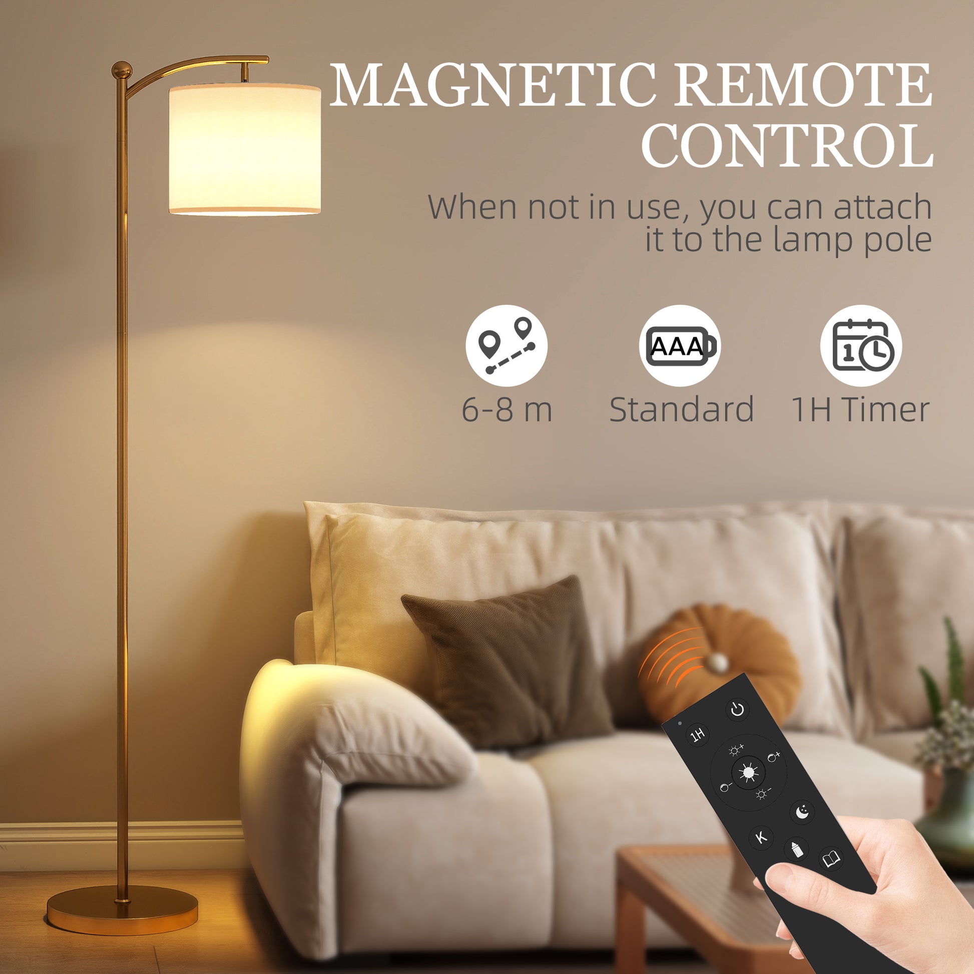 Transform your living space with the HOMCOM standard lamp. It features 11 levels of adjustable brightness and colour temperature, ranging from warm to cool white, with a remote for seamless control. For added convenience, the remote magnetically attaches to the pole, ensuring it's always within easy reach. Stylish and functional, this reading lamp effortlessly enhances any space of your home, blending seamlessly with various decor styles.
