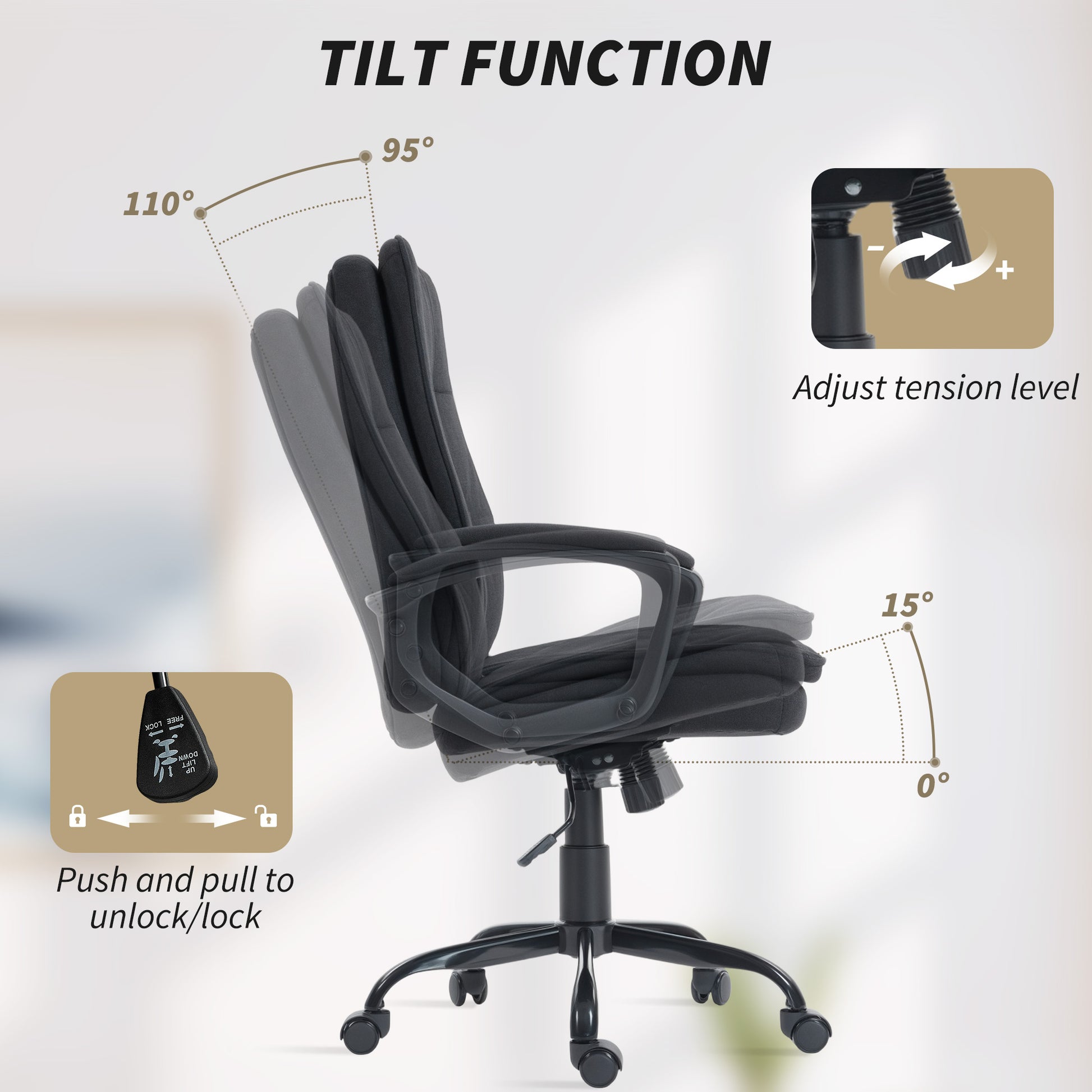 Double the office comfort with our HOMCOM office chair. The double-layer 12 cm cushioned seat and back keep you comfortable as you work, so you can just focus. Adjust the seat height between 50-60 cm, so you work at the level you need. It's wrapped in breathable linen-look upholstery; complete with silent-glide wheels to roll around easily.