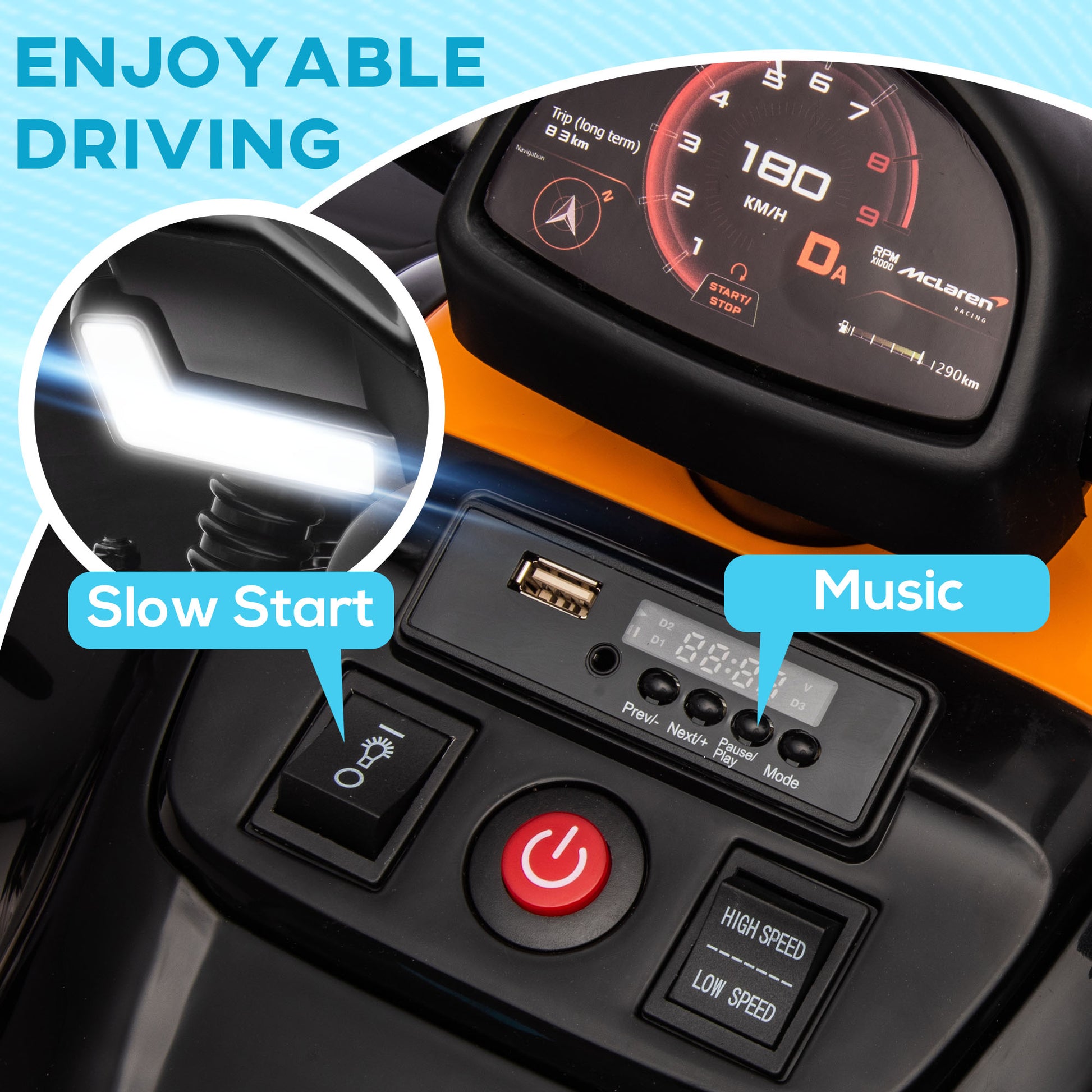 Mclaren Licensed 12V Quad Bike with Slow Start, Music, Headlights, MP3 Slot, Suspension Wheels, for 3-8 Years - Black