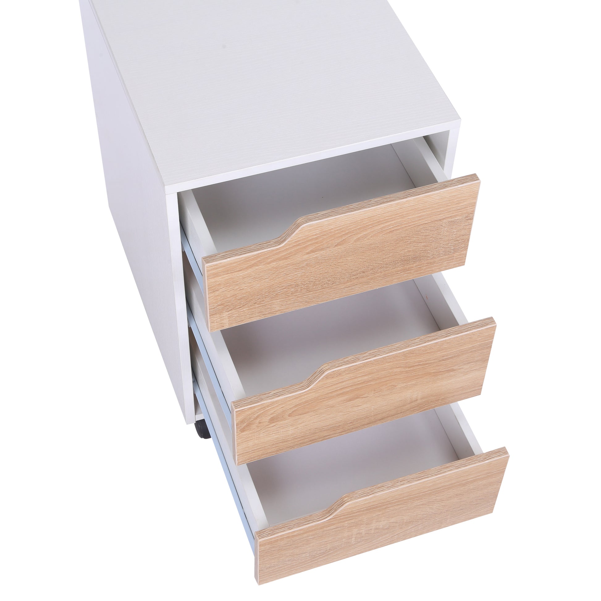 MDF Mobile File Cabinet pedestal with 3 Drawers Lockable Casters Oak and White