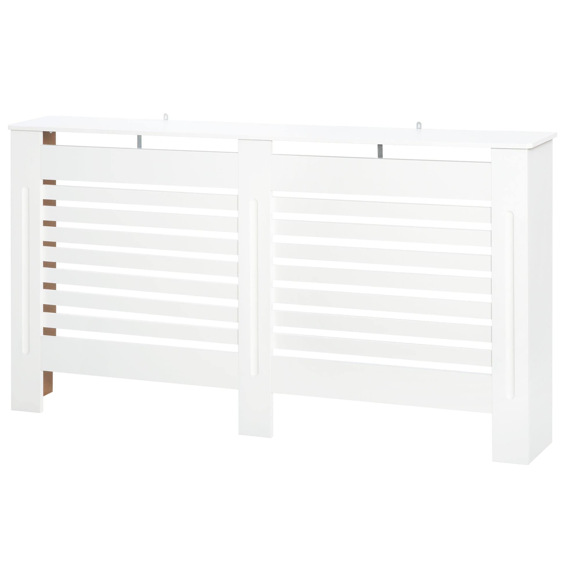 This modern radiator cover cabinet from HOMCOM is a designed to help hide old or unsightly radiator, protect hands from a hot surface and offer extra shelving for ornaments. The slatted design with sufficient vents allows for fluid heat flow while still preventing children and pets from touching the hot radiator surface. Manufactured from durable MDF in white finish for long term service, it is an elegant yet practical addition to your home and office.
