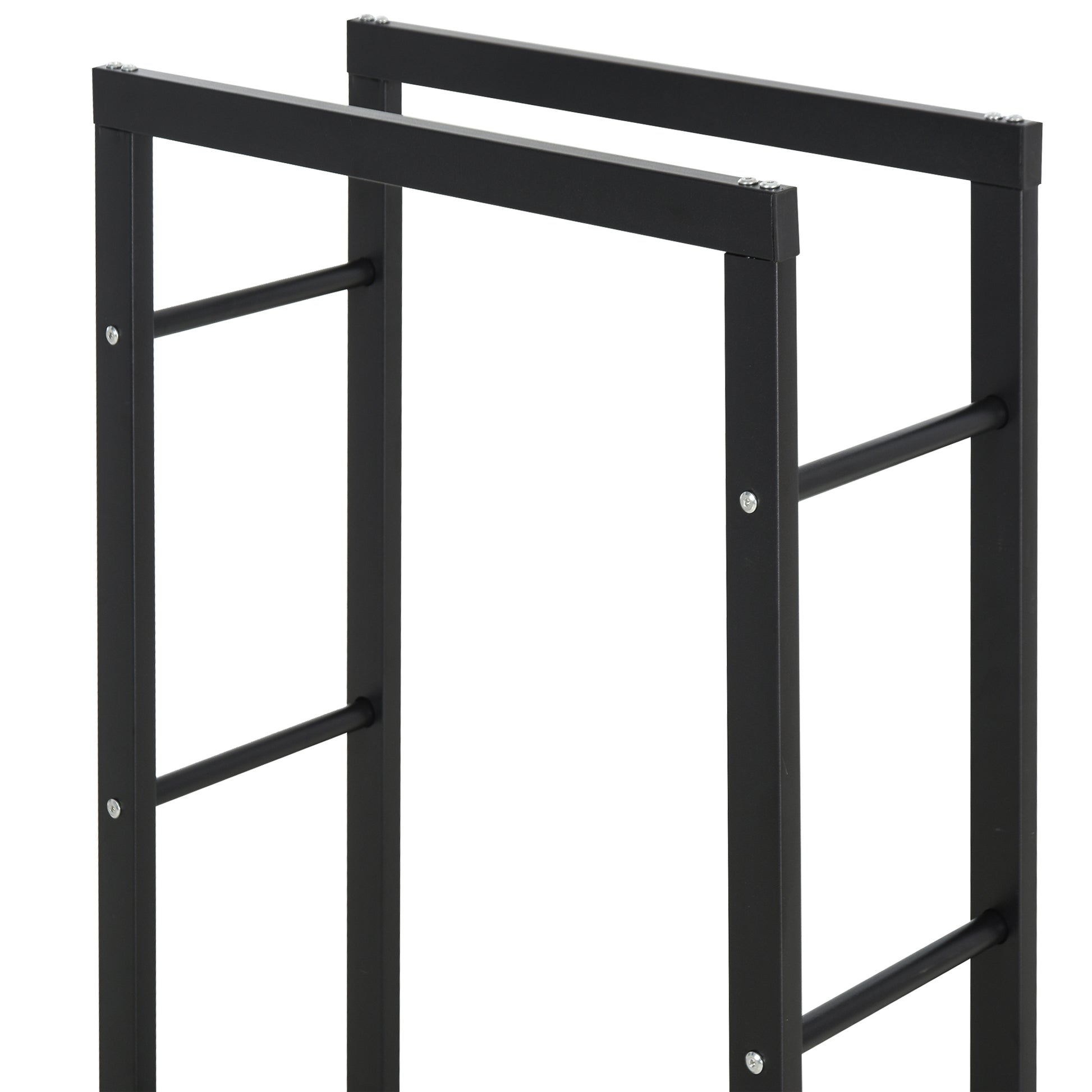 Metal Firewood Log Holder Tall Firewood Rack Indoor Outdoor Fireplace Wood Storage Shelf with Rust-Resistant, Black, 60W x 25D x 100H cm
