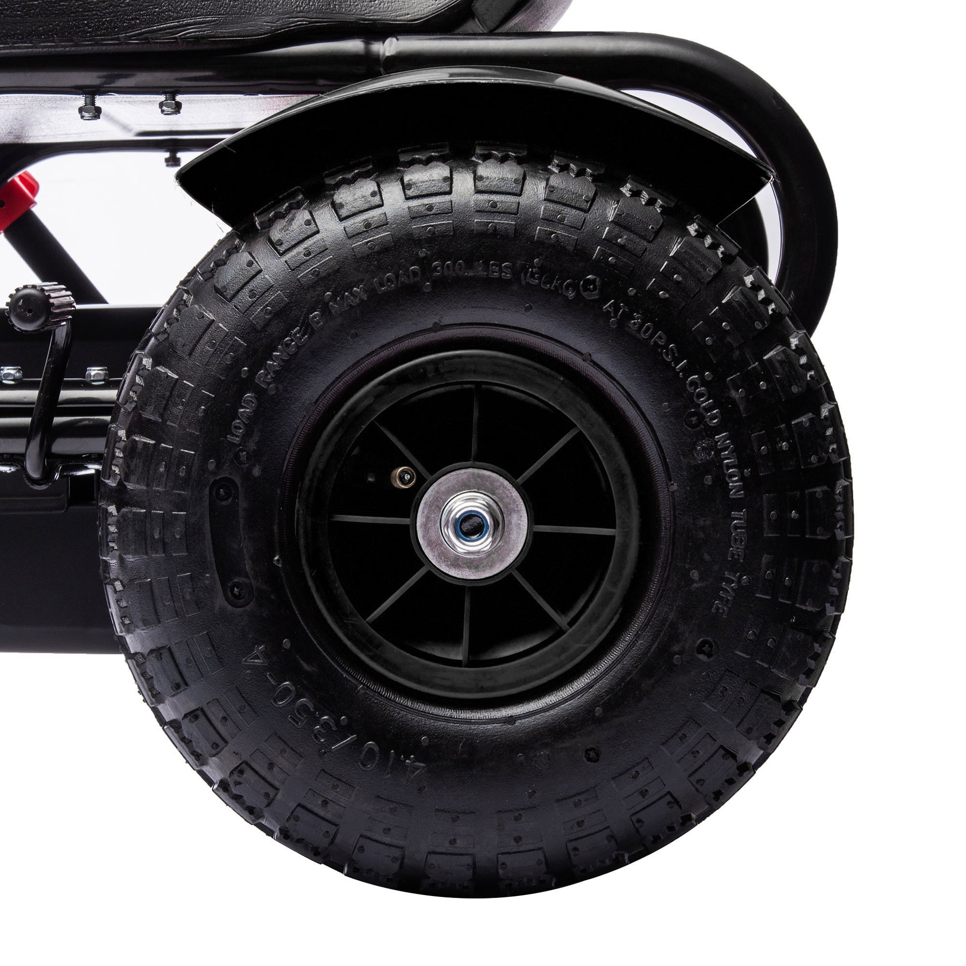 - Inflatable rubber wheels with a suspension system, ensuring the ride is smooth