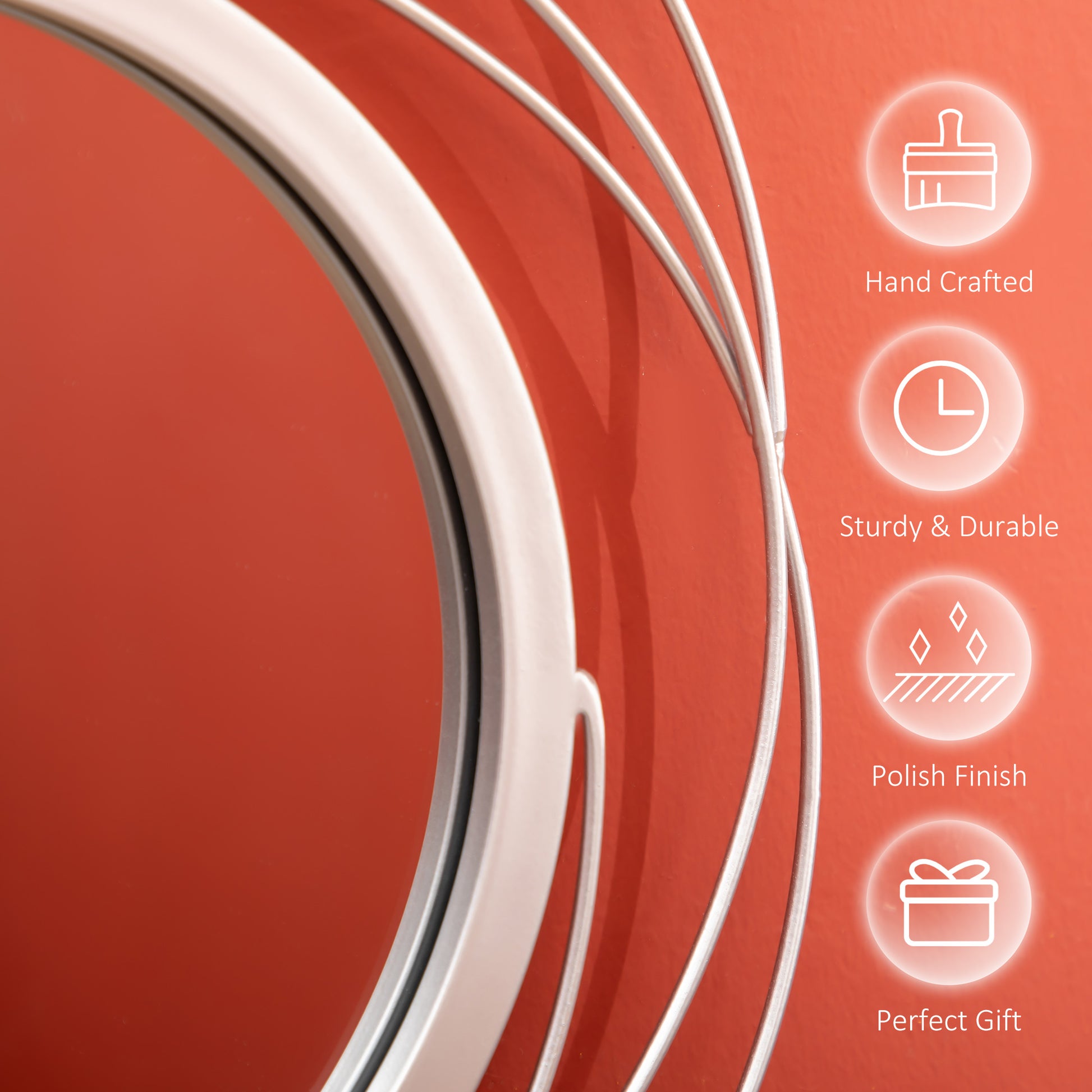 Metal Wall Art Modern Decorative Mirror Decor Hanging Home Wall Sculptures for Living Room Bedroom Dining Room, Silver