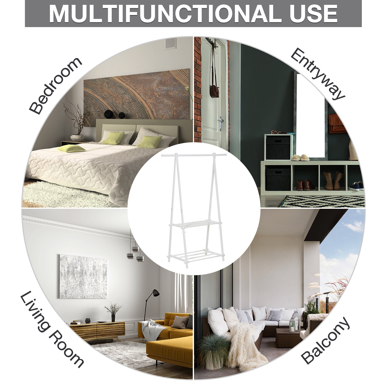 Minimalist Foldable Adjustable Clothes Rack Hanger w/ 2 shelves 107.5L x 45W x 150H cm Hallway Entryway Furniture - White