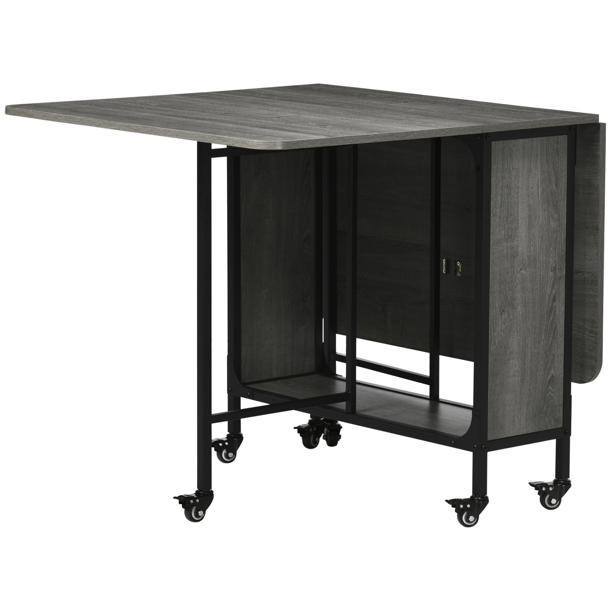 Make large unused tables at home a thing of the past. Choose this folding dining table from HOMCOM for an option that saves space when needed. Crafted into an expandable design, where both sides lift from the bottom; it creates extra surface room while dropping back down into a compact unit effortlessly. It comes with a middle shelf for discreet storage and six wheels to move easily. Completed with brakes.