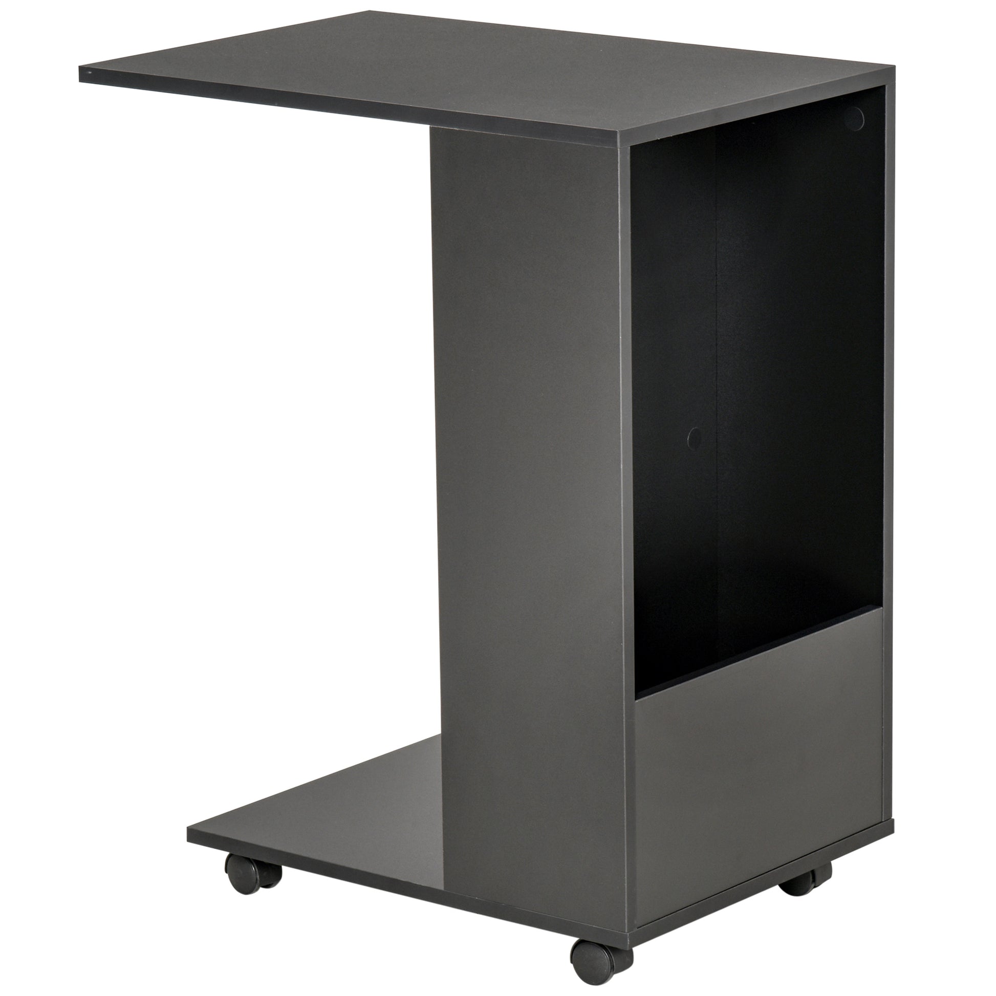 Mobile Sofa Side Table C-Shape End Table with Storage and Casters for Laptop Coffee Snack, Black