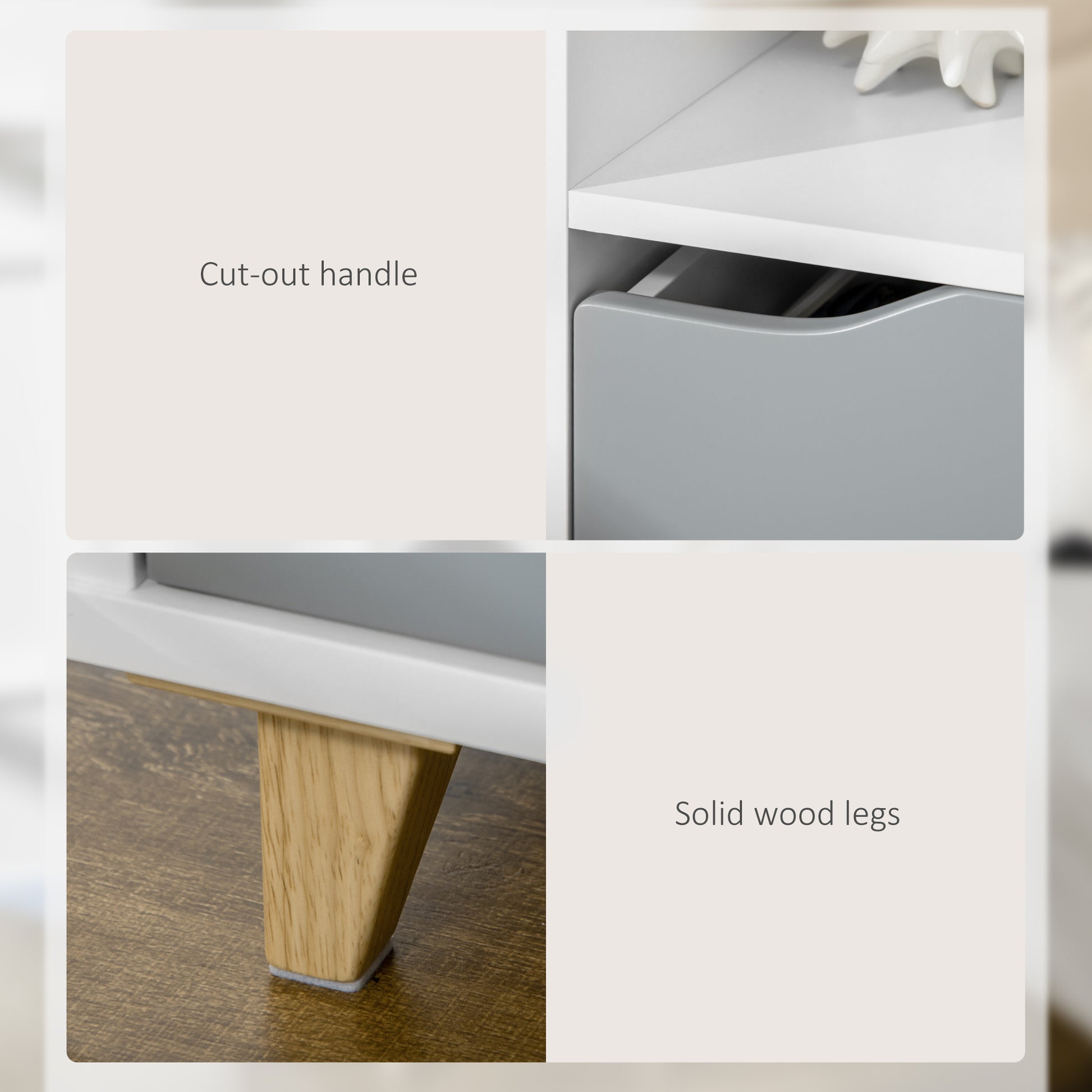 Need some more storage in your bedroom and beyond? This HOMCOM nightstand is here to help. It comes in a simple design, with a white frame and grey coloured drawer - pleasant on the eye and easy to bring into interior design space. Features a bottom drawer and top shelf - plenty of storage room. Complete with four bottom peg feet to elevate and balance.