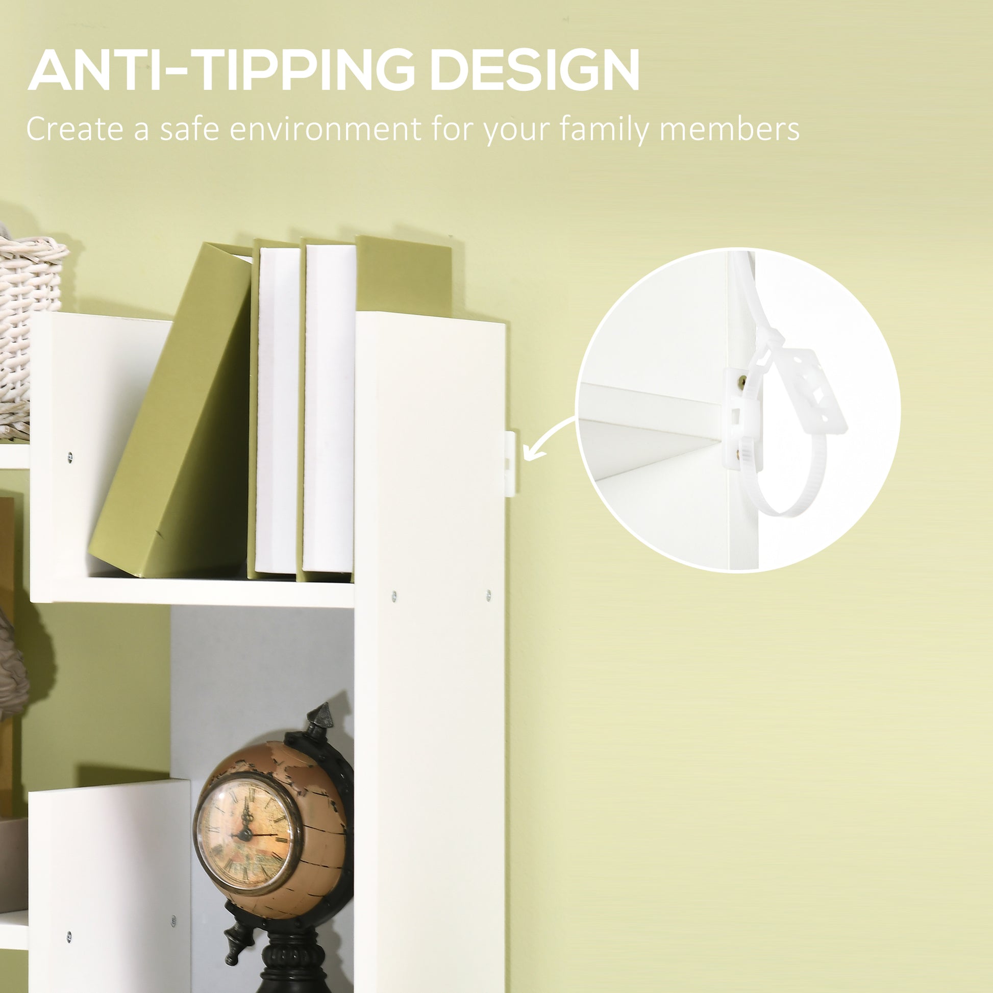 Home storage, but done in a unique way. This HOMCOM ladder shelf comes in a cubic shape, with open and closed shelves - brings a mixed dimension of character to where it stands. Made from a blend of particle board, this furniture piece is sturdy - with the flat base keeping it balanced - for the everyday storage and display of books, trinkets, boxes, photos and beyond. Comes with anti-tipping straps to safely attach to the wall.