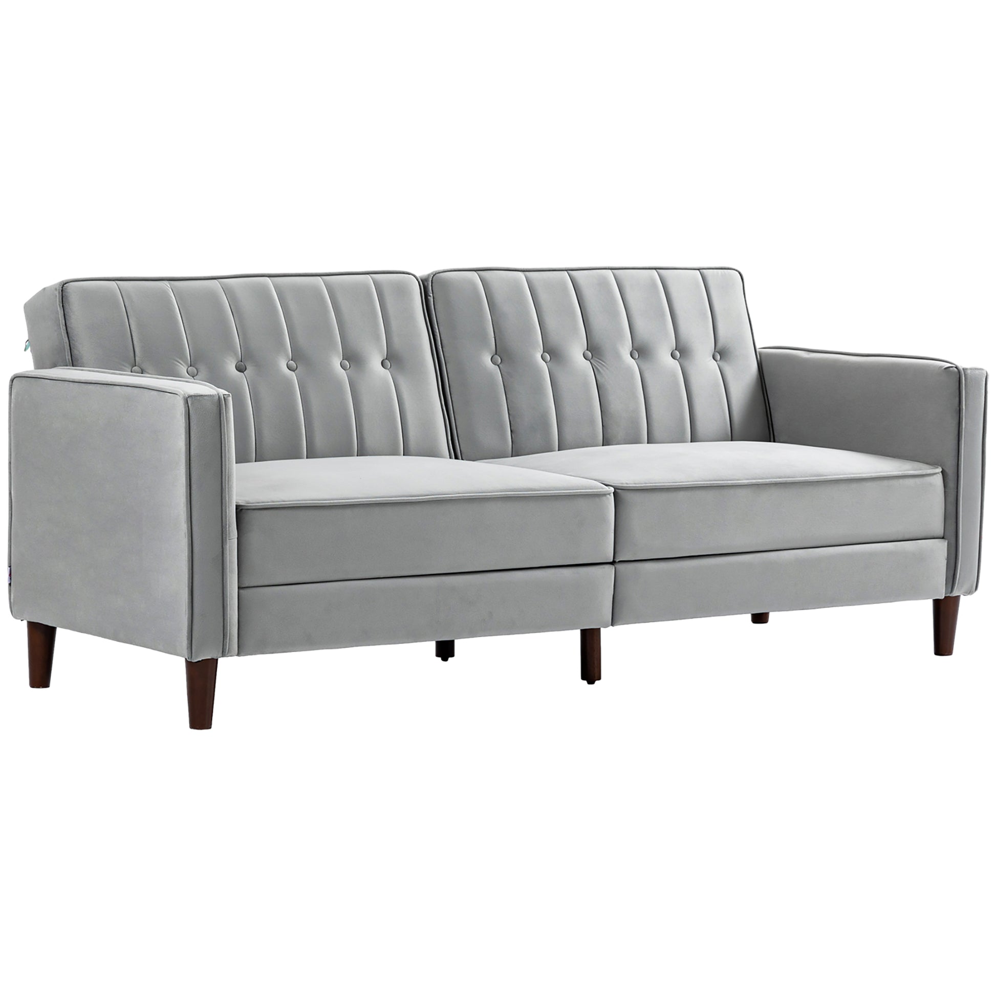 Modern Convertible Sofa Futon Velvet-Touch Tufted Couch Compact Loveseat with Adjustable Split Back, Light Grey