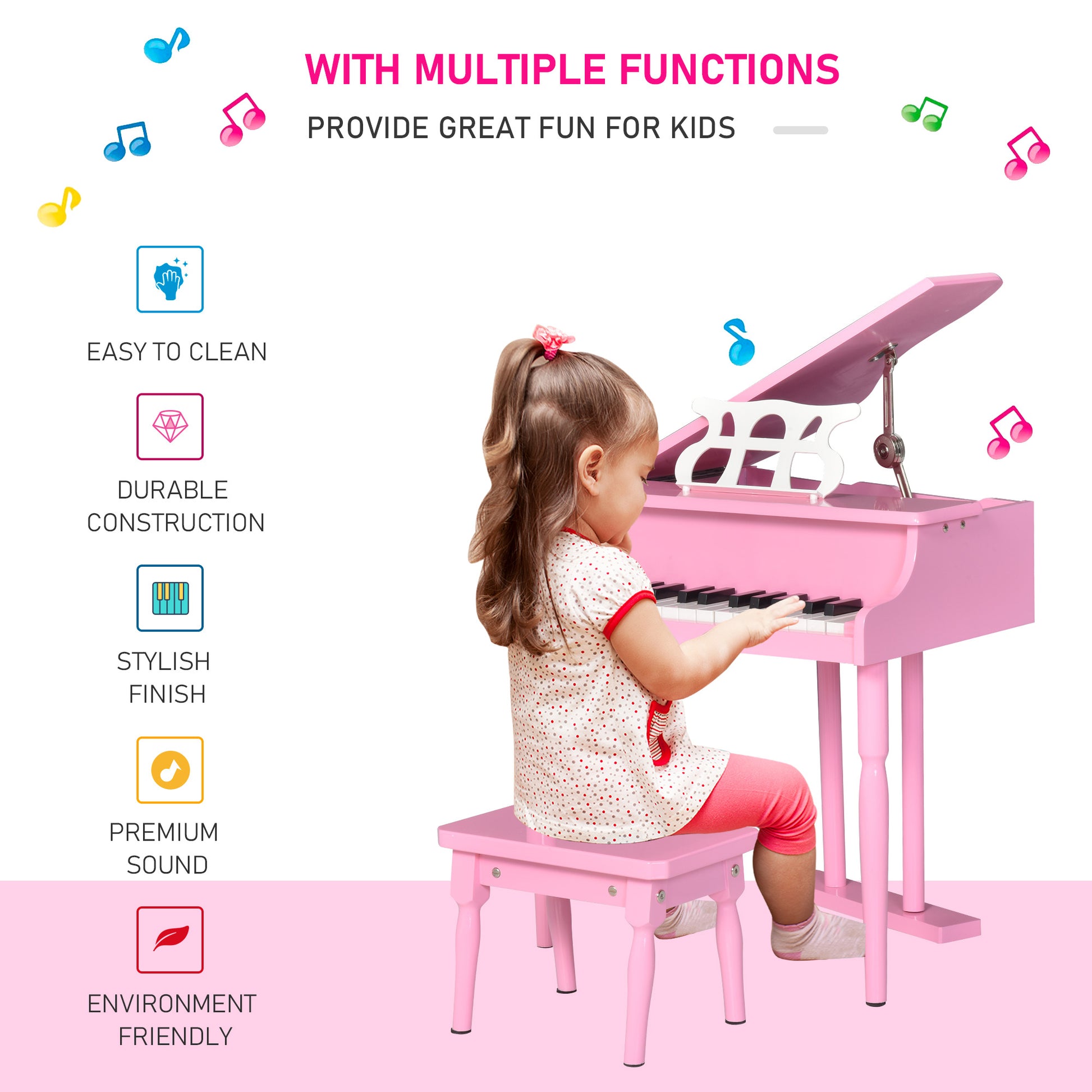 Modern Kids Piano 30 Keys Set of 2 Mini Toy for Child Grand Piano with Music Stand and Bench, Best Gifts Pink