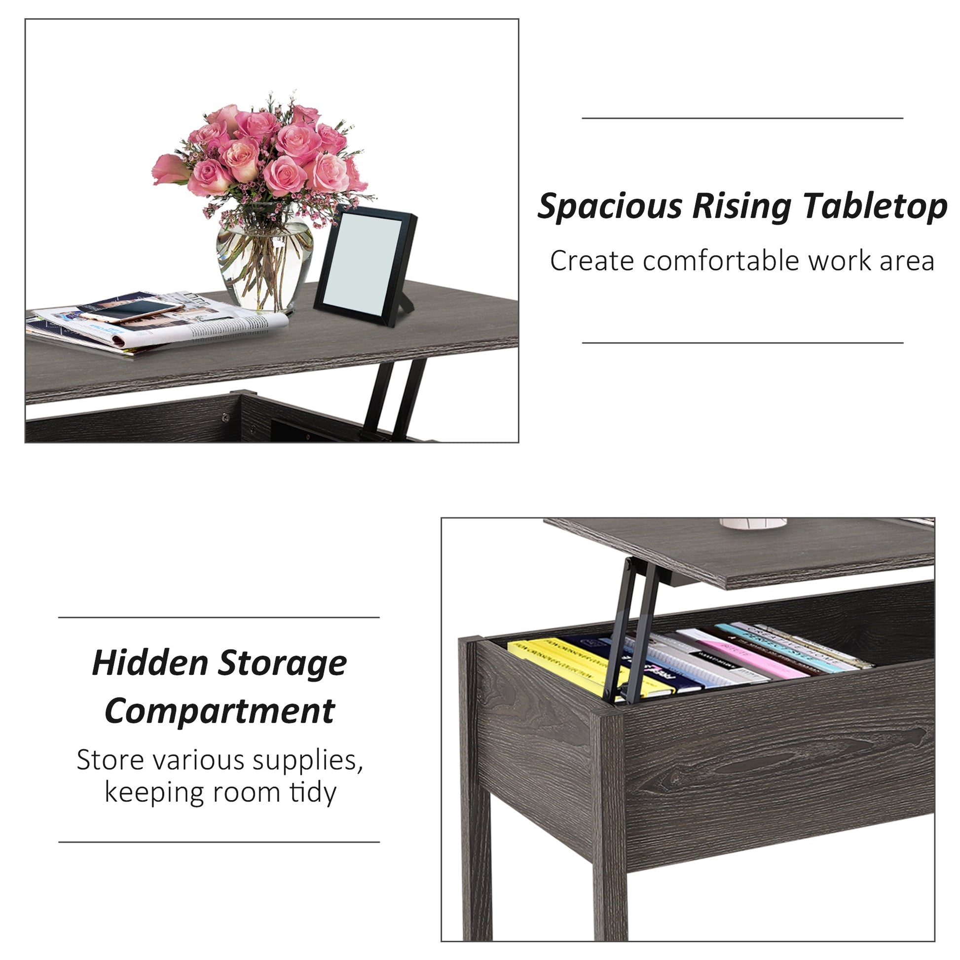 Modern Lift Top Coffee Table with Storage Compartment Convertible Tea Desk Floating Retractable Table Home Office Living Room Furniture Tan