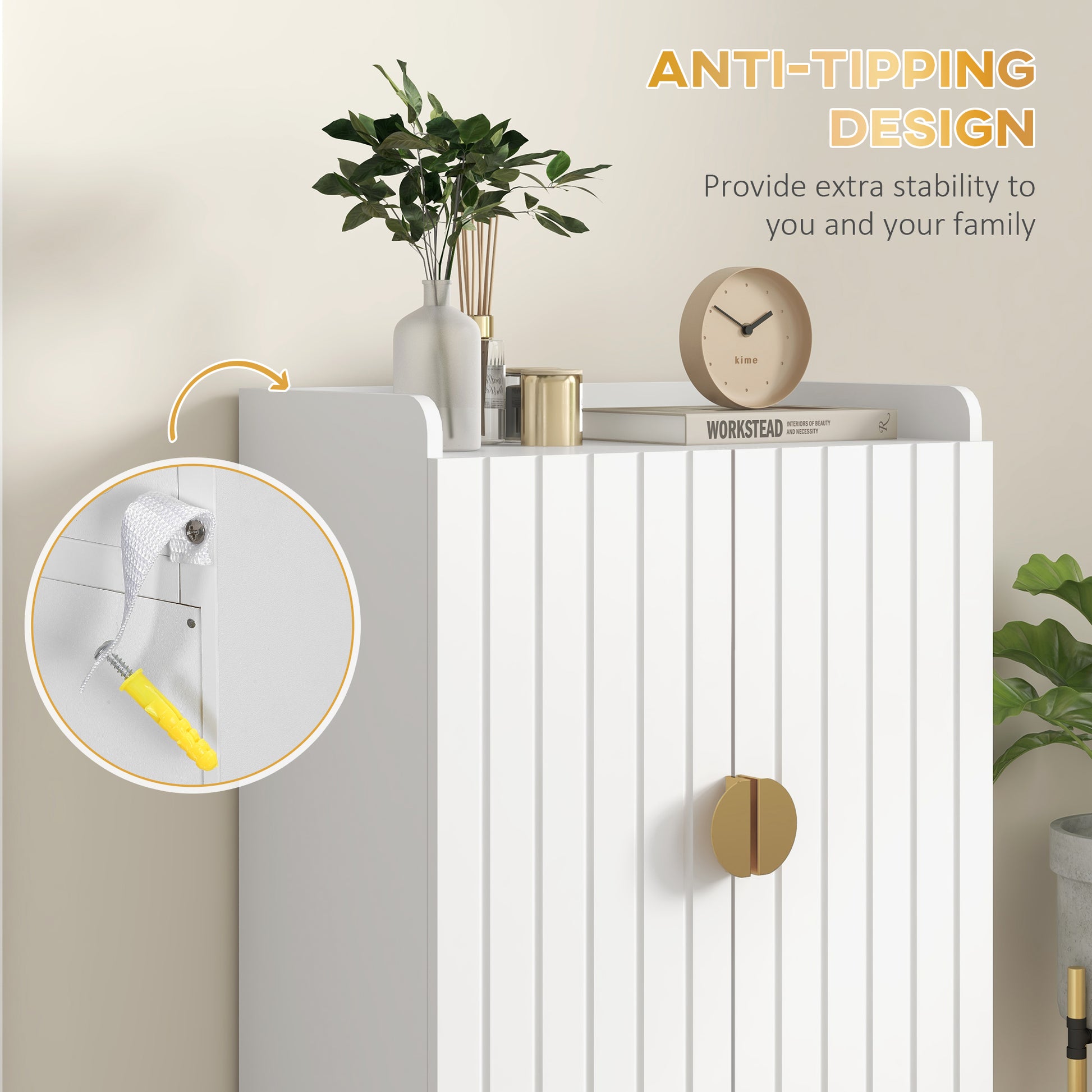 Start organizing and storing your footwear the easy way - go for the narrow shoe cabinet from HOMCOM. Crafted into a 4-tier closed cabinet design with 3 interior adjustable shelves and an open storage shelf, which offers flexible space for up to 15 pairs of shoes totally. Features anti-tipping hardware, meaning this hallway storage unit is suitable for homes with children and pets. Therefore, just purchase it and you won't regret it.