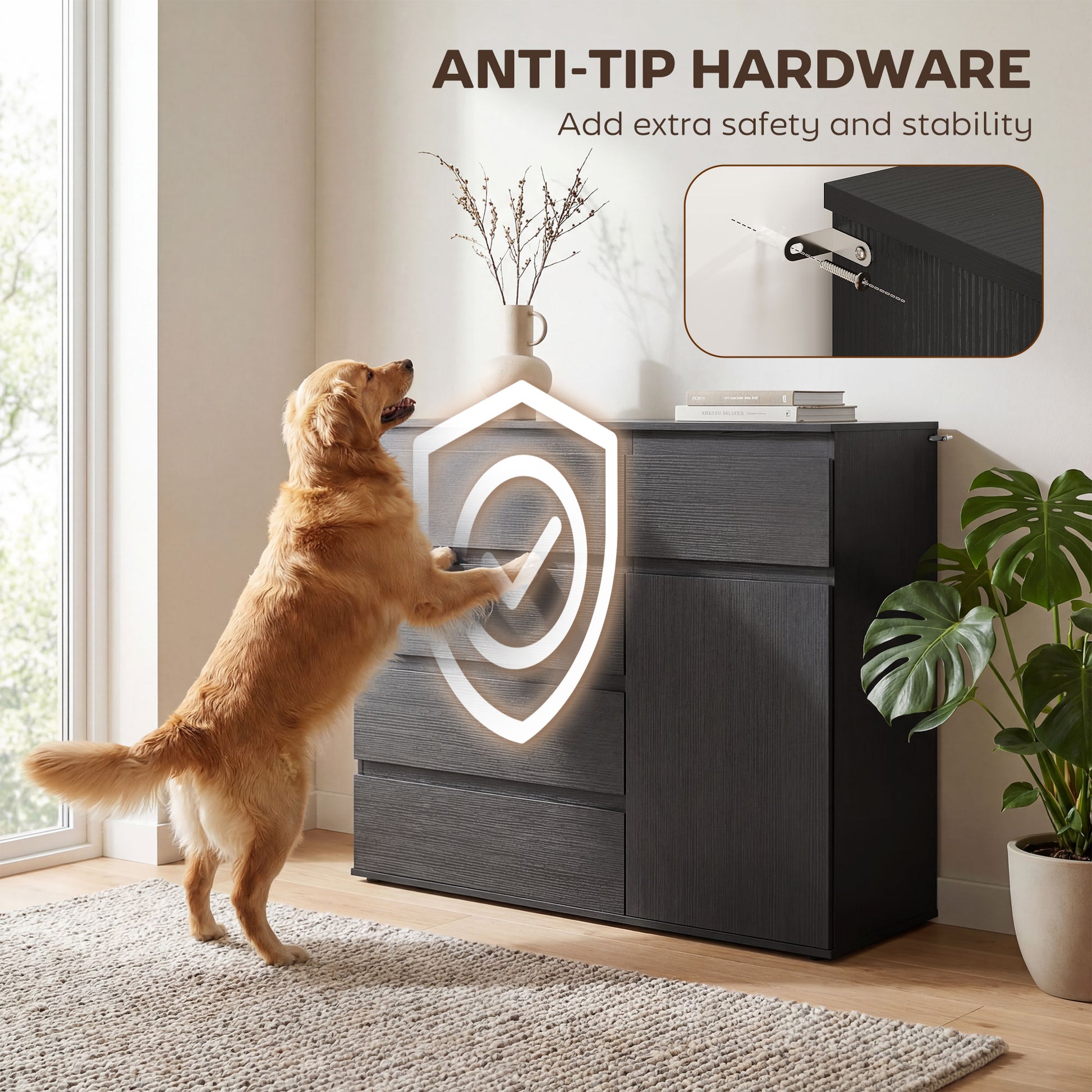 - Includes an anti-tip kit for enhanced safety and stability in your home