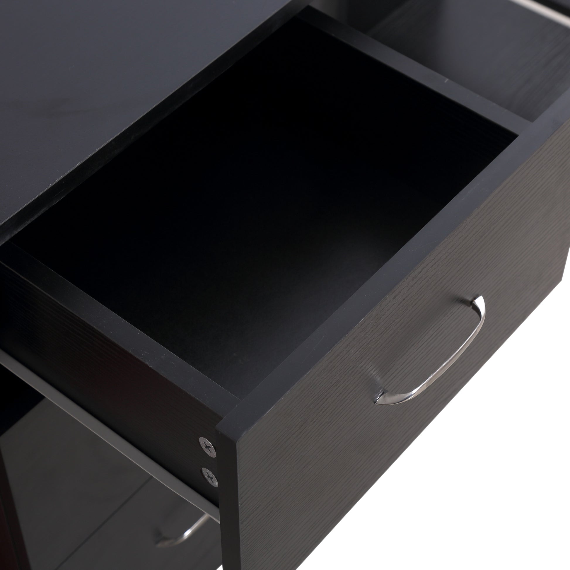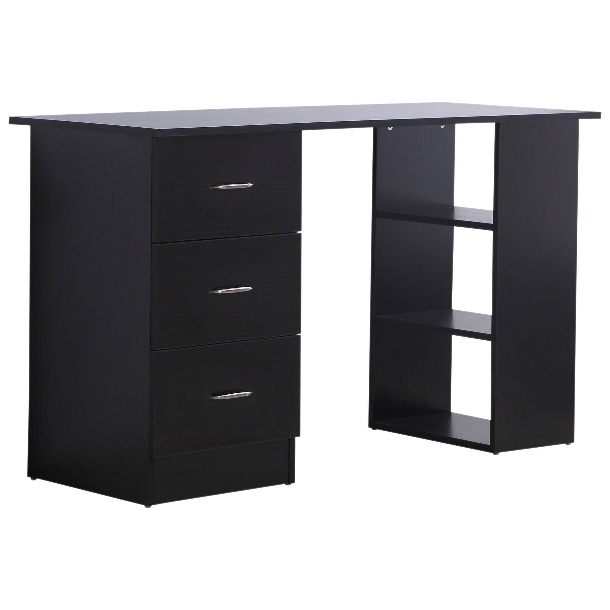 Modern Style Computer Desk Writing PC Table Workstation Laptop Study Stationery Cupboard w/ 3 Shelf & Drawers - Black 120H cm