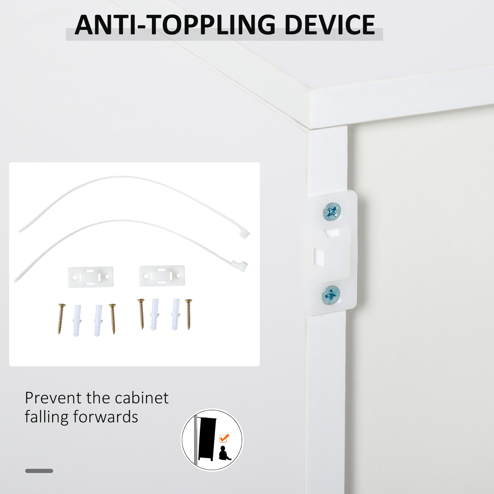 This small sideboard from HOMCOM is a durable and stylish addition to every home, keeping your space clean and tidy with ease. It's made from particle board for a durable structure, with anti-tipping straps on the back for safety. With the push-click design, drawers and cabinet doors are quick and effortless to open and close. The elevated base allows air to flow through for freshness. An effortless way to bring in sleek style into your living space with our HOMCOM storage cupboard.