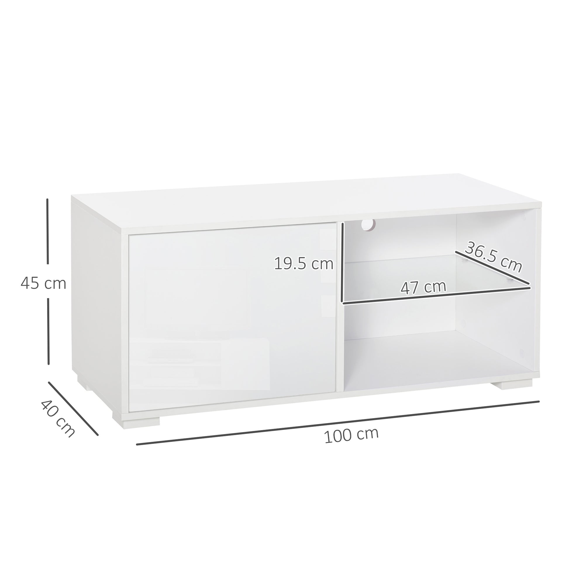 Modern TV Stand Media Unit w/ High Gloss Door Cabinet 2 Shelves Living Room Office Home Furniture White