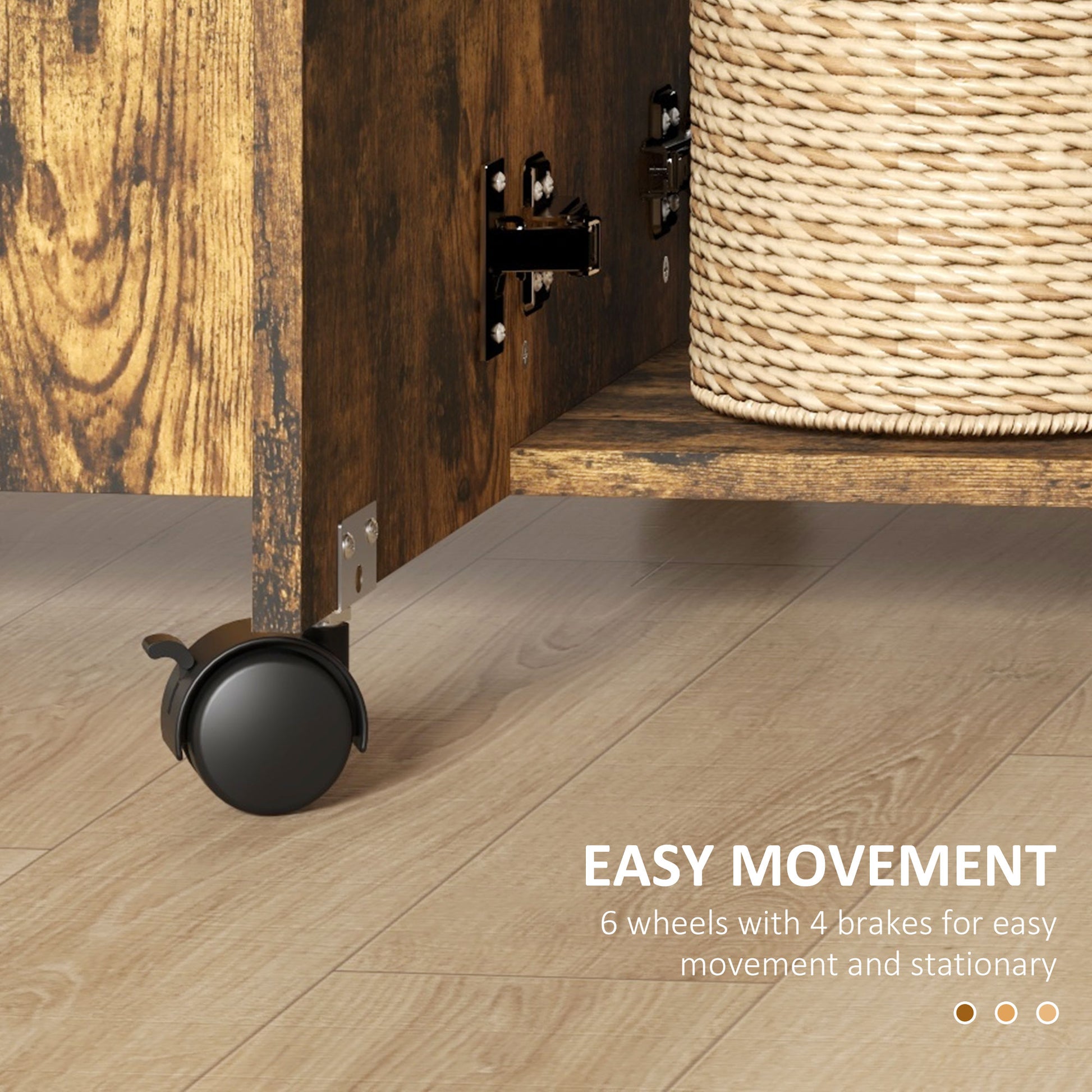 A small dining table which expands - look to this HOMCOM expanding drop leaf piece for more compact spaces. Both ends are fitted with lift-up tabletops - sitting between four and six people: great for when you require extra dining space. It comes with two drawers, a shelf and a cabinet which offers handy storage for kitchenware and more. Complete with six wheels to move easily (four with brakes).