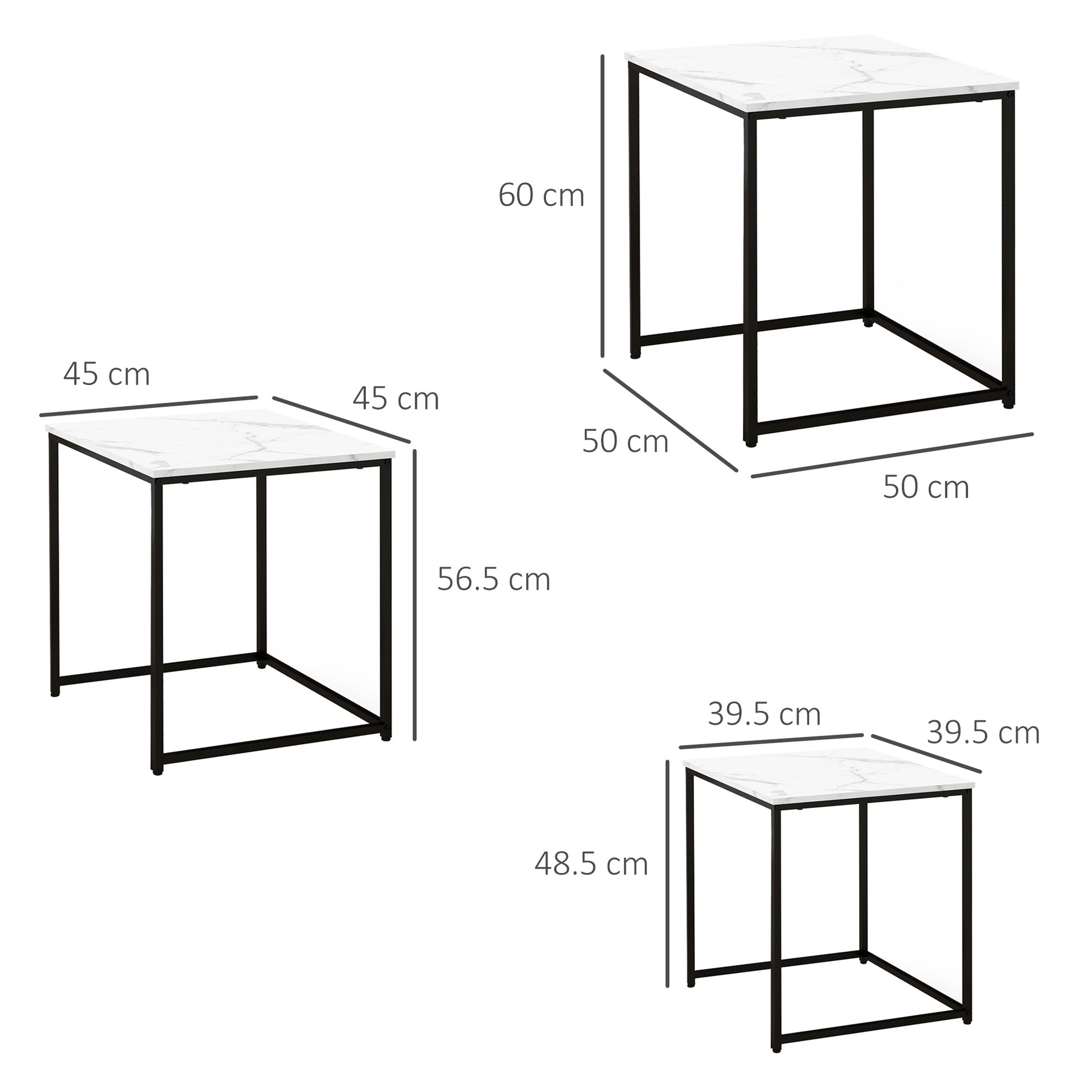 Nesting Tables Set of 3, Side End Table with Faux Marble Effect Top and Steel Legs for Living Room, Bedroom, White