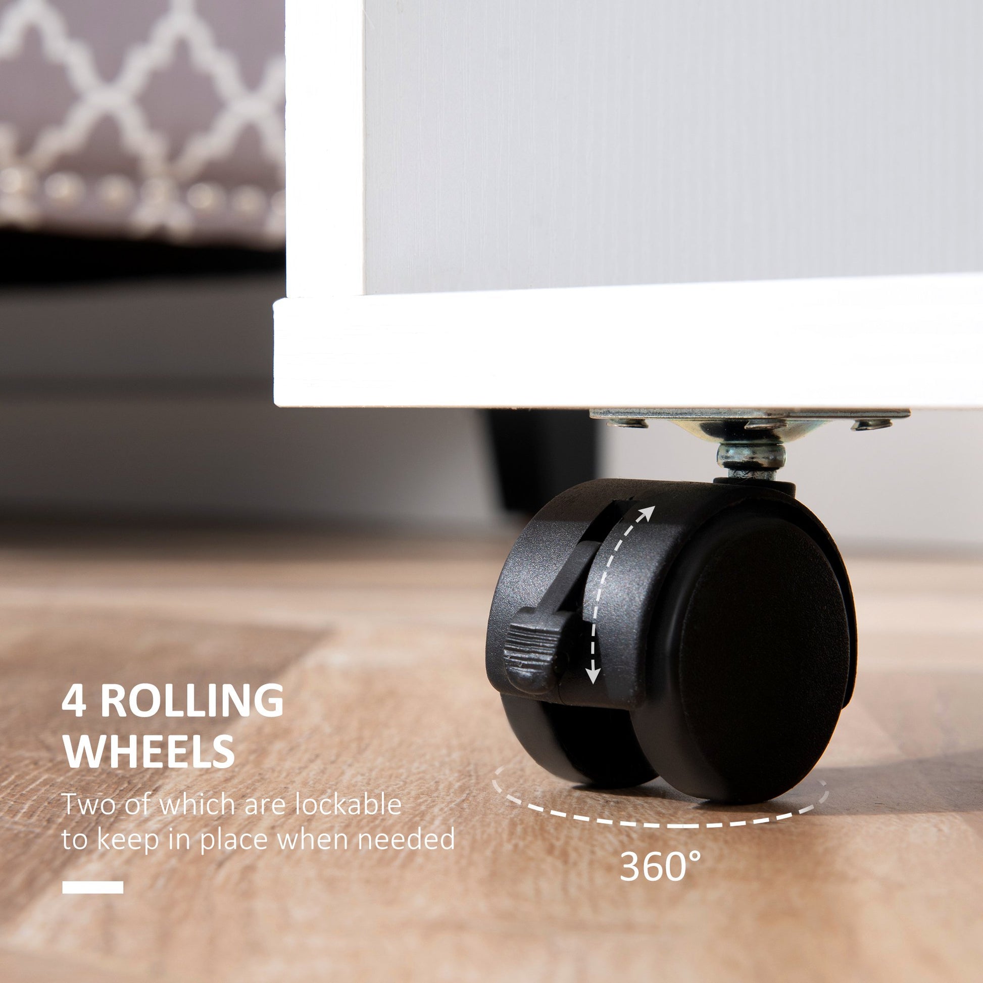 - Four wheels, two of which are lockable, enable you to move your wardrobe with ease