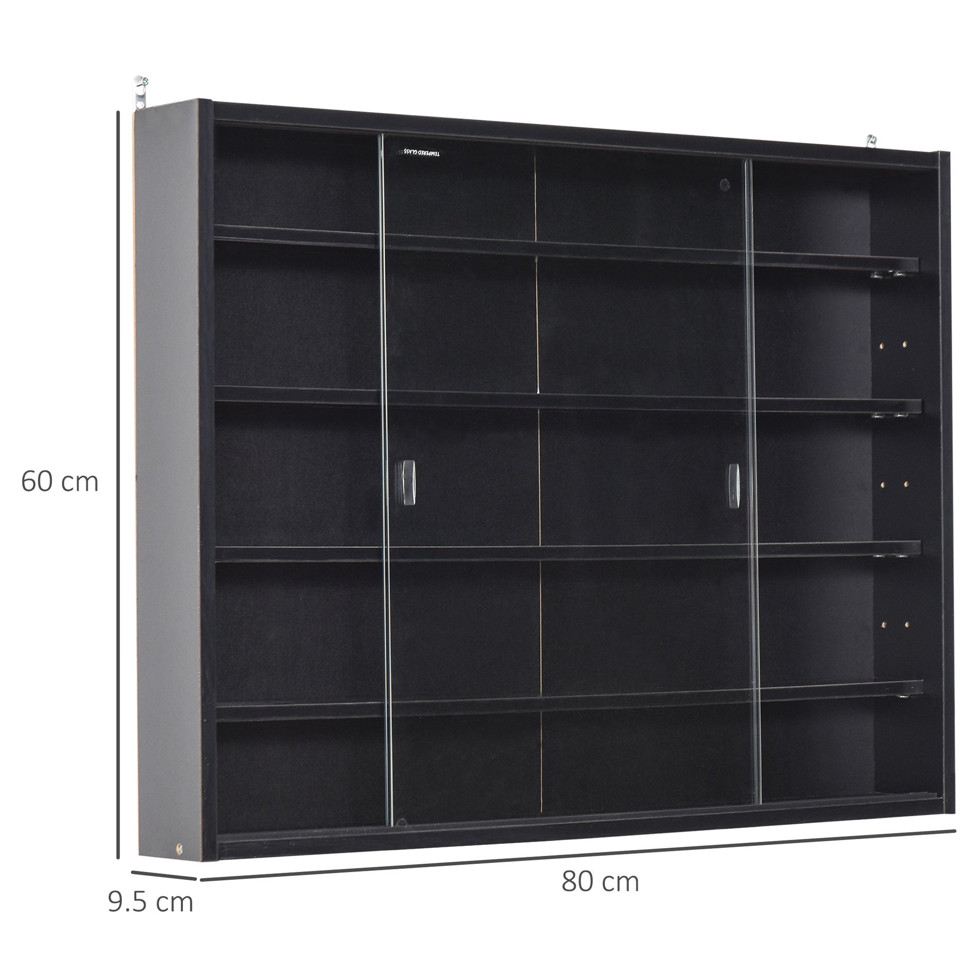 It's time to get your ornaments displayed and organised - look no further than this wall cabinet from HOMCOM. Its five-tier design means there is plenty of room for keeping everything you want safely on show, with each shelf being able to adjust to suit what you need to hold. The structure is crafted from particle board, so it is tough and durable, and the front is fitted with two moving glass doors, keeping everything protected and easy to access when wanted. Easy to put in place, this classic home furnishing will keep all your favourite pieces beautifully displayed.