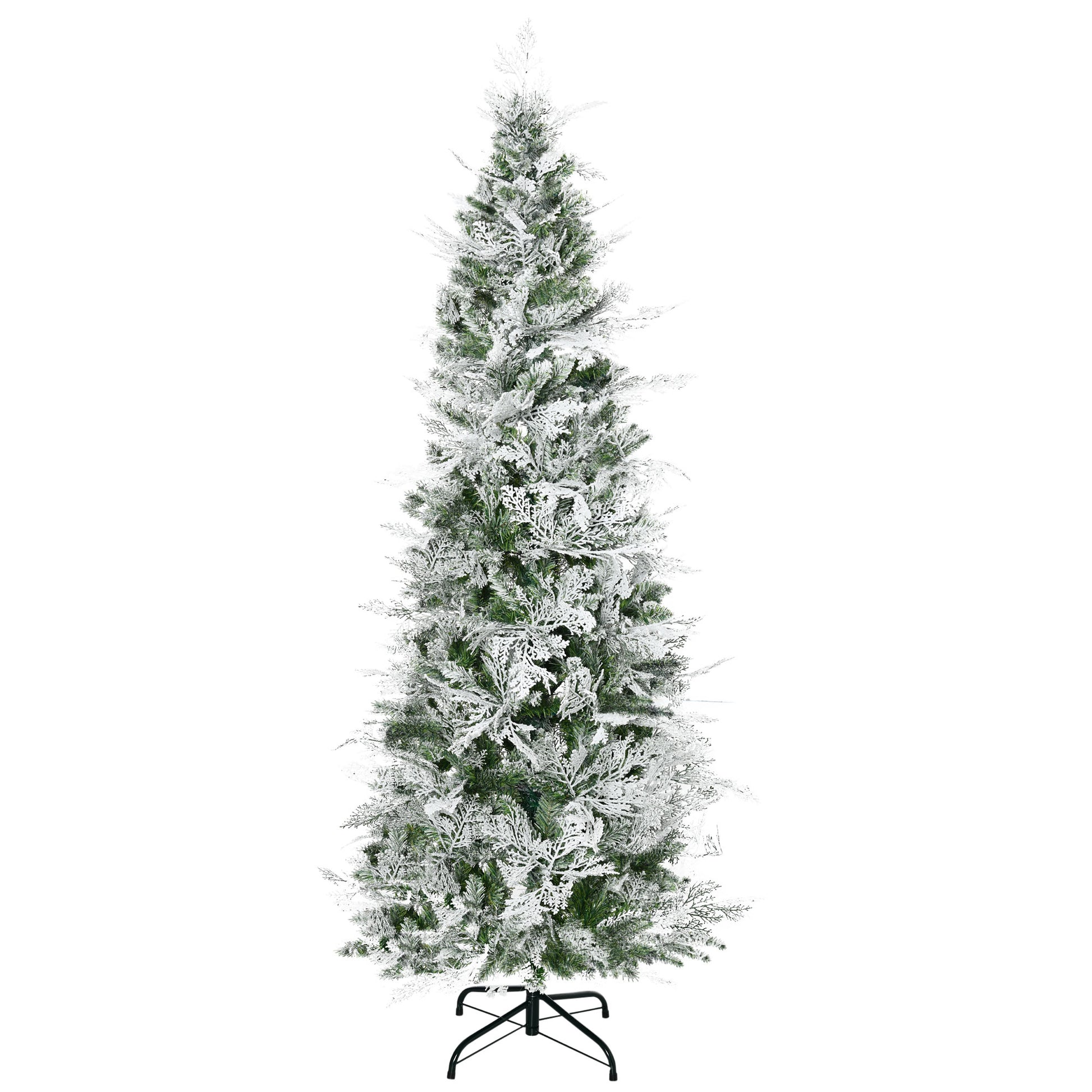 Pencil Snow Flocked Artificial Christmas Tree with Realistic Cypress Branches, Auto Open, Green