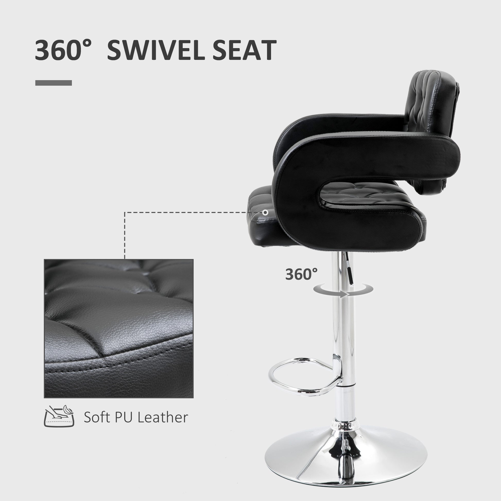 PU Leather Upholstered Swivel Bar Stool, Height Adjustable Barstool with Back, Armrest, Footrest for Kitchen