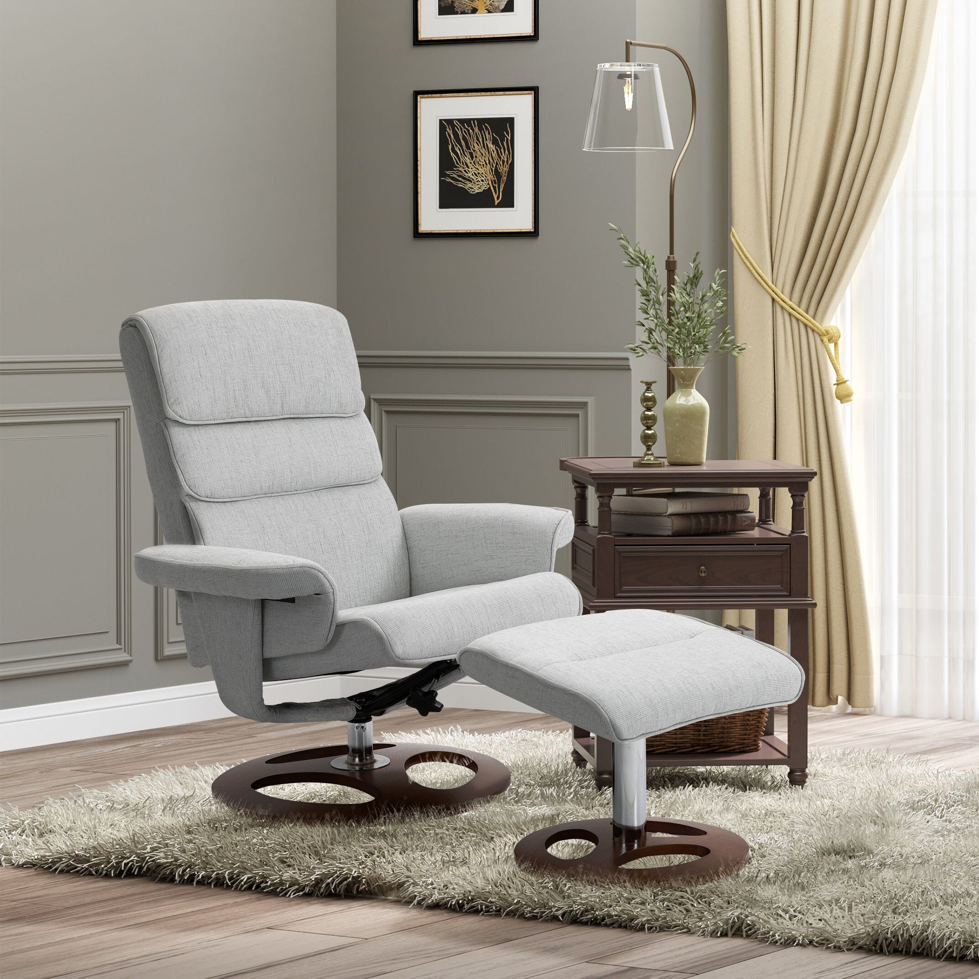 Recliner Chair Ottoman Set 360° Swivel Sofa Stool Modern Soft Thick Padding Wood Base Grey