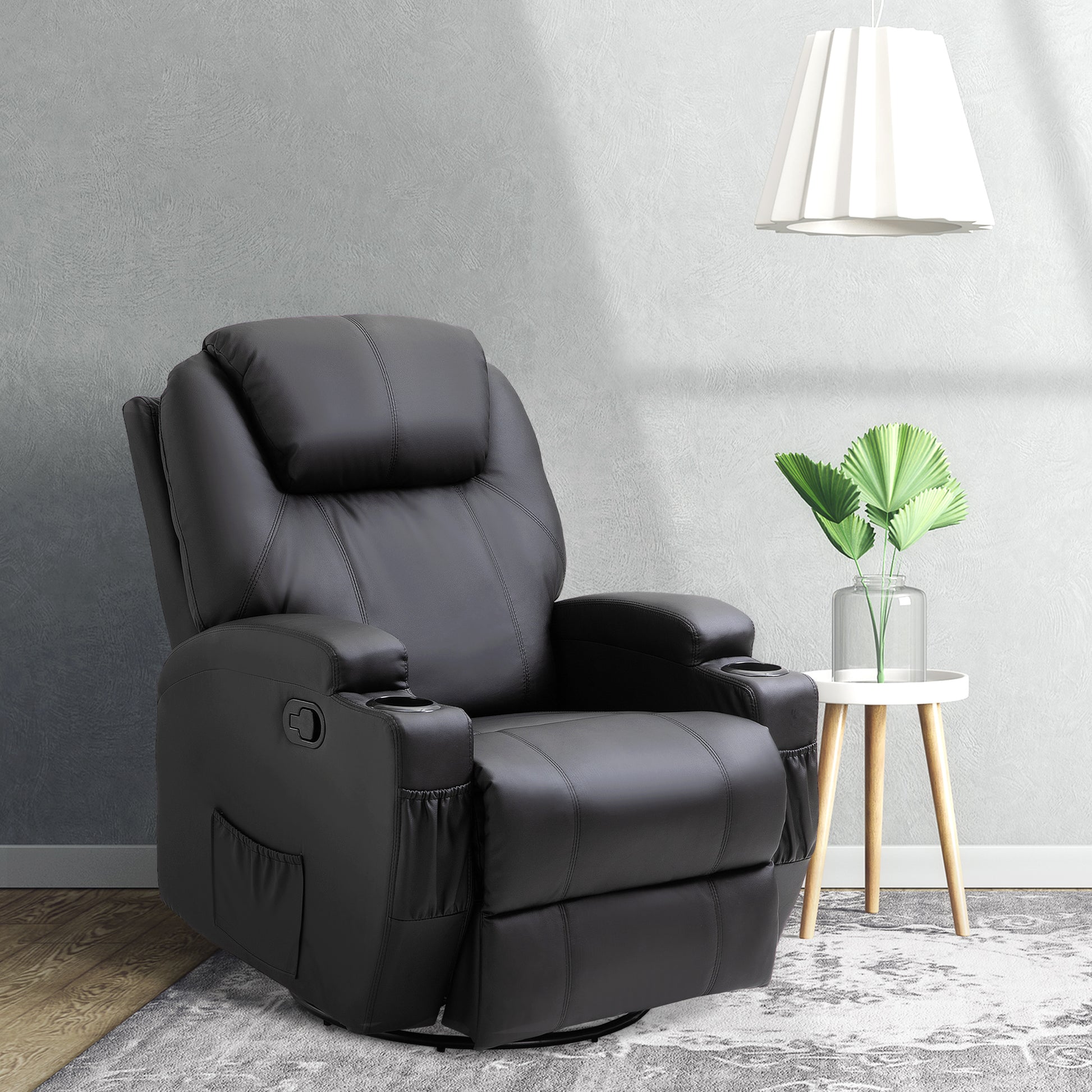 Sink into supreme comfort - with sleek style to match: get this recliner chair from HOMCOM. Its overstuffed upholstery is 22cm thick, which a high back and armrests to support your body too. Eight massage points, controlled by the remote are fitted on the back, lumbar, thighs and calves to soothe your body all over. Finished with sleek PU leather upholstery. Release the stress of a long day, anytime with this impressive and bold chair.