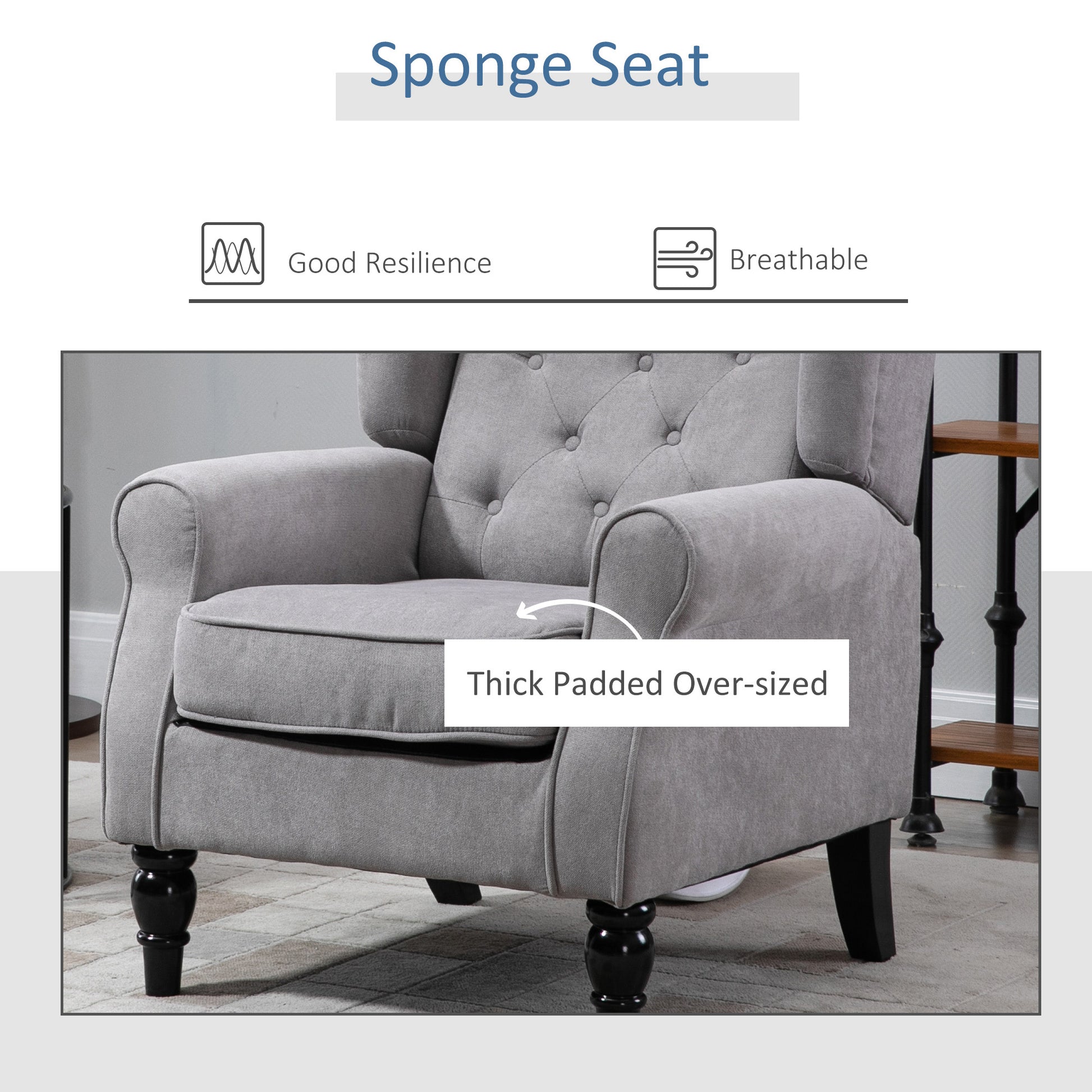 Retro Vintage Style Accent Chair, Wingback Armchair with Wood Frame Button Tufted Design for Living Room Bedroom, Grey