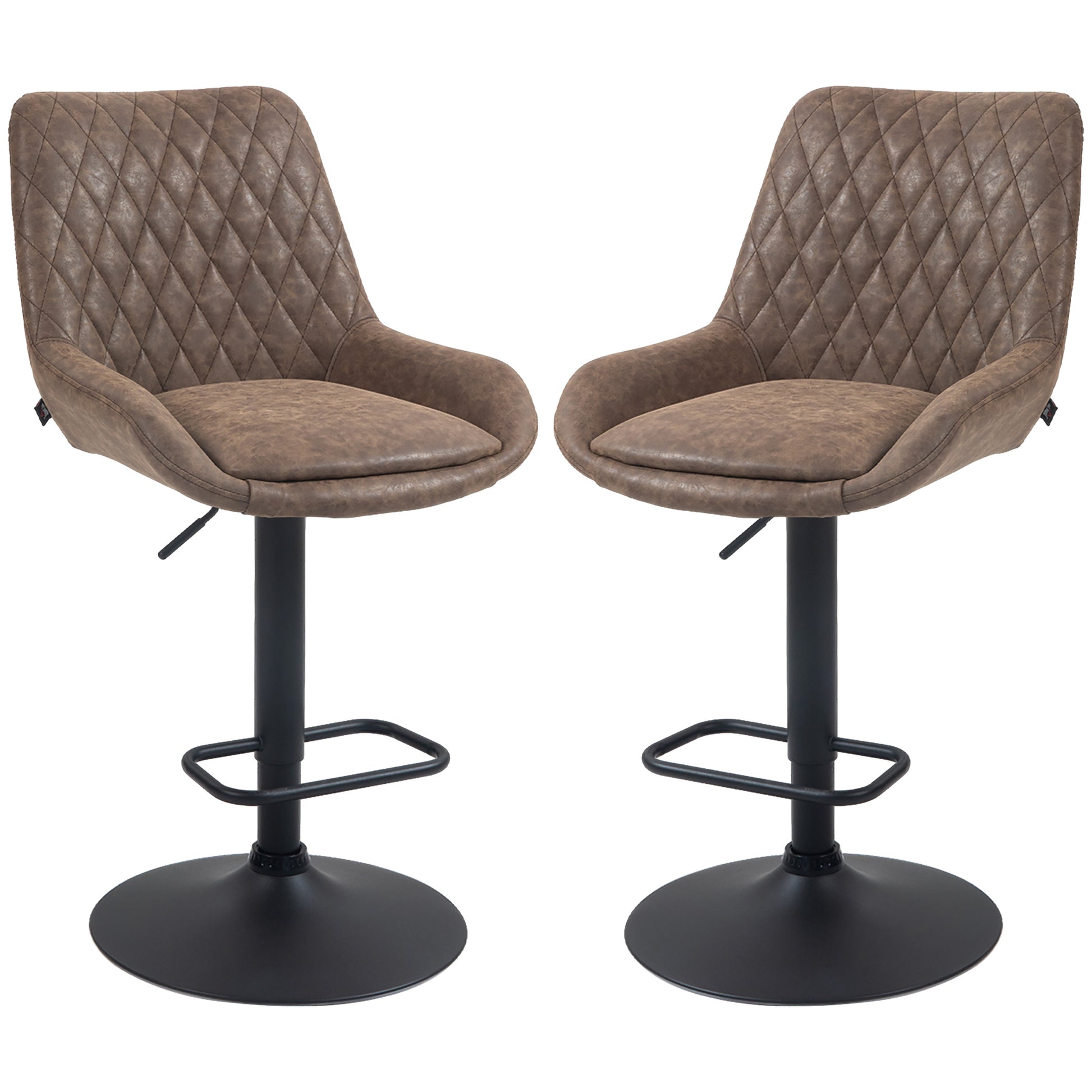A stylish look for your kitchen dining spots with these HOMCOM bar stools. Faux leather upholstery for a beautiful look. Padded seat and high back to keep you comfortable and supported. A metal base for strength and keeping you supported, the height is adjustable between 63-83cm: set to a level best for you. Completed with a lower footrest.