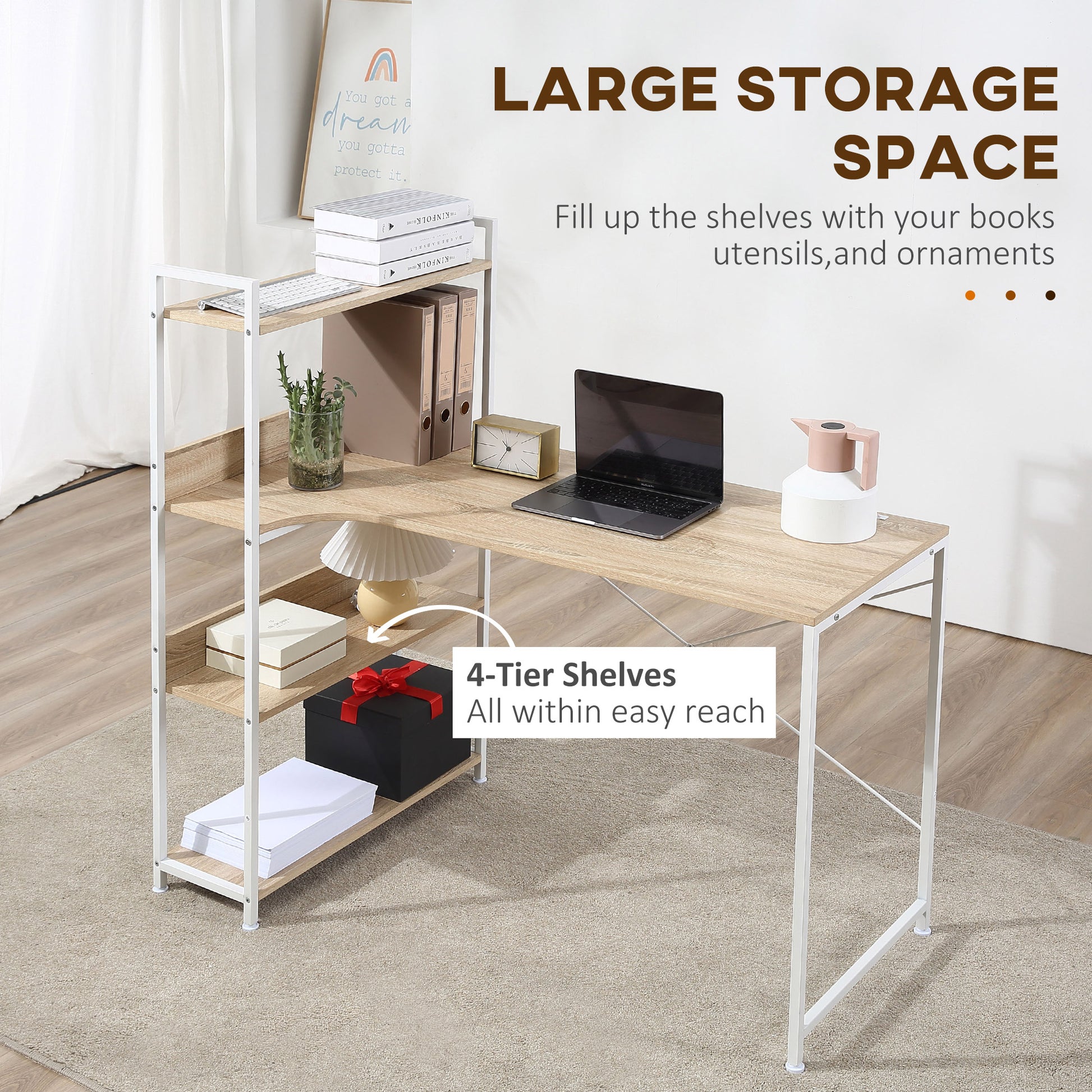 Retro Industrial Computer Desk Home Office Table with 4-Tier Storage Shelf Metal Frame Computer Workstation for Home Office, Oak