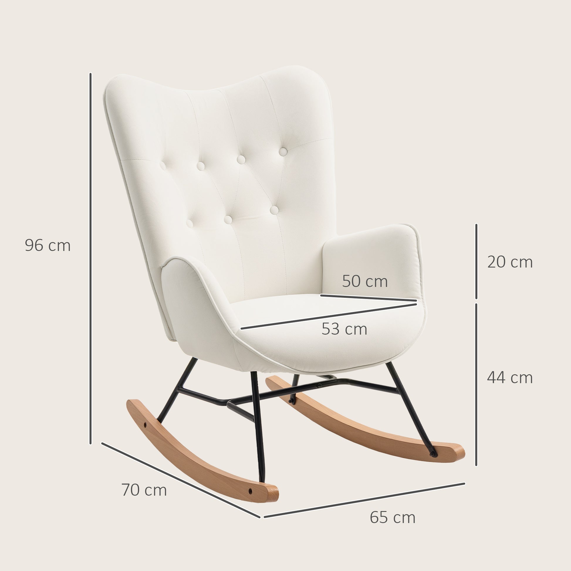 Rocking Chair, Modern Upholstered Velvet Armchair with Solid Wood Legs and Metal Frame, Cream