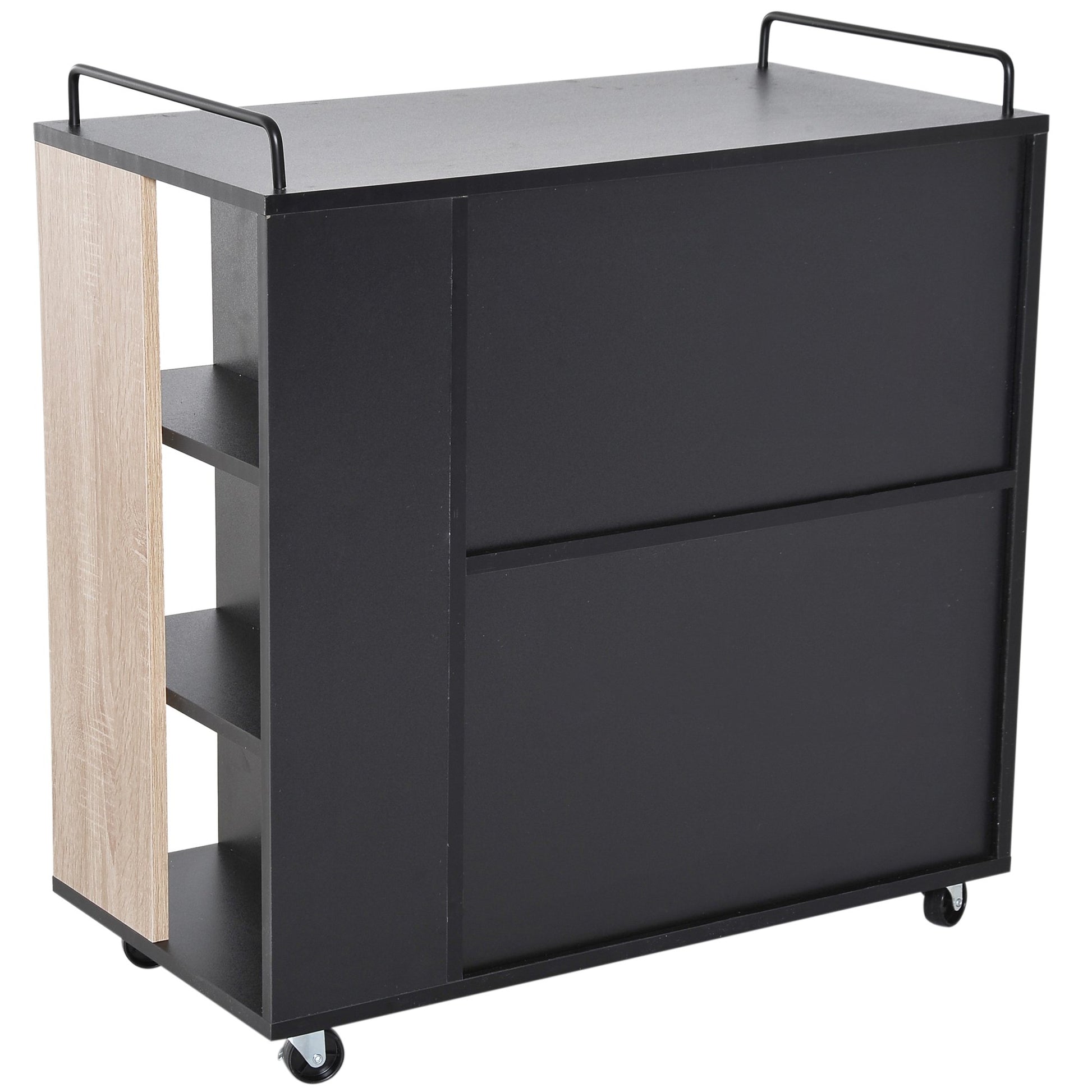 Rolling Kitchen Island, 76.5Wx40Dx82H cm Oak / Black Colour