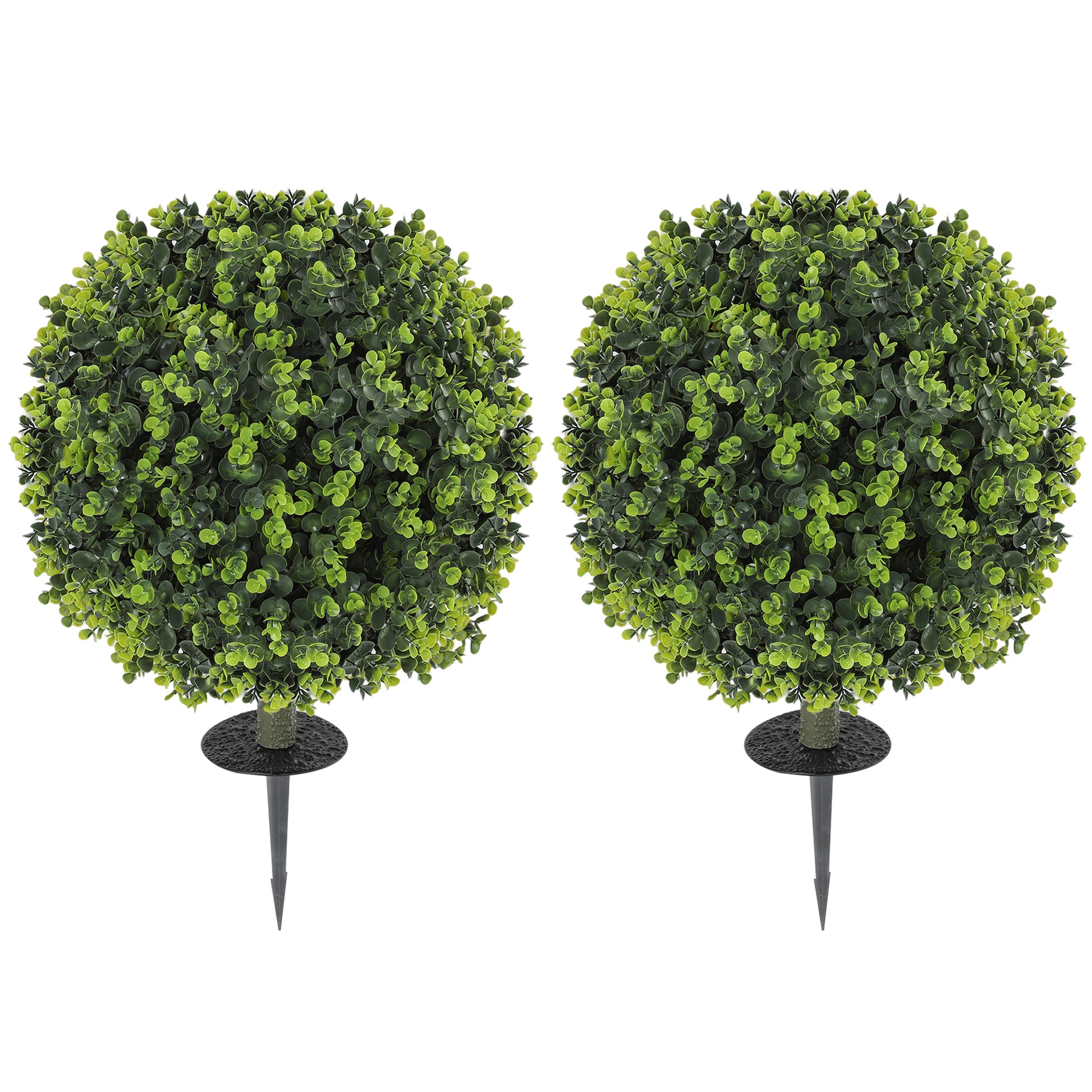 Transform your space effortlessly with HOMCOM's Artificial Plants! This 2-pack features realistic boxwood topiary balls with lush eucalyptus leaves, suitable as the small fake plants indoors and out. UV-resistant and maintenance-free, just pop them into the ground or a planter and enjoy the green without the fuss. Friendly for those without a green thumb!