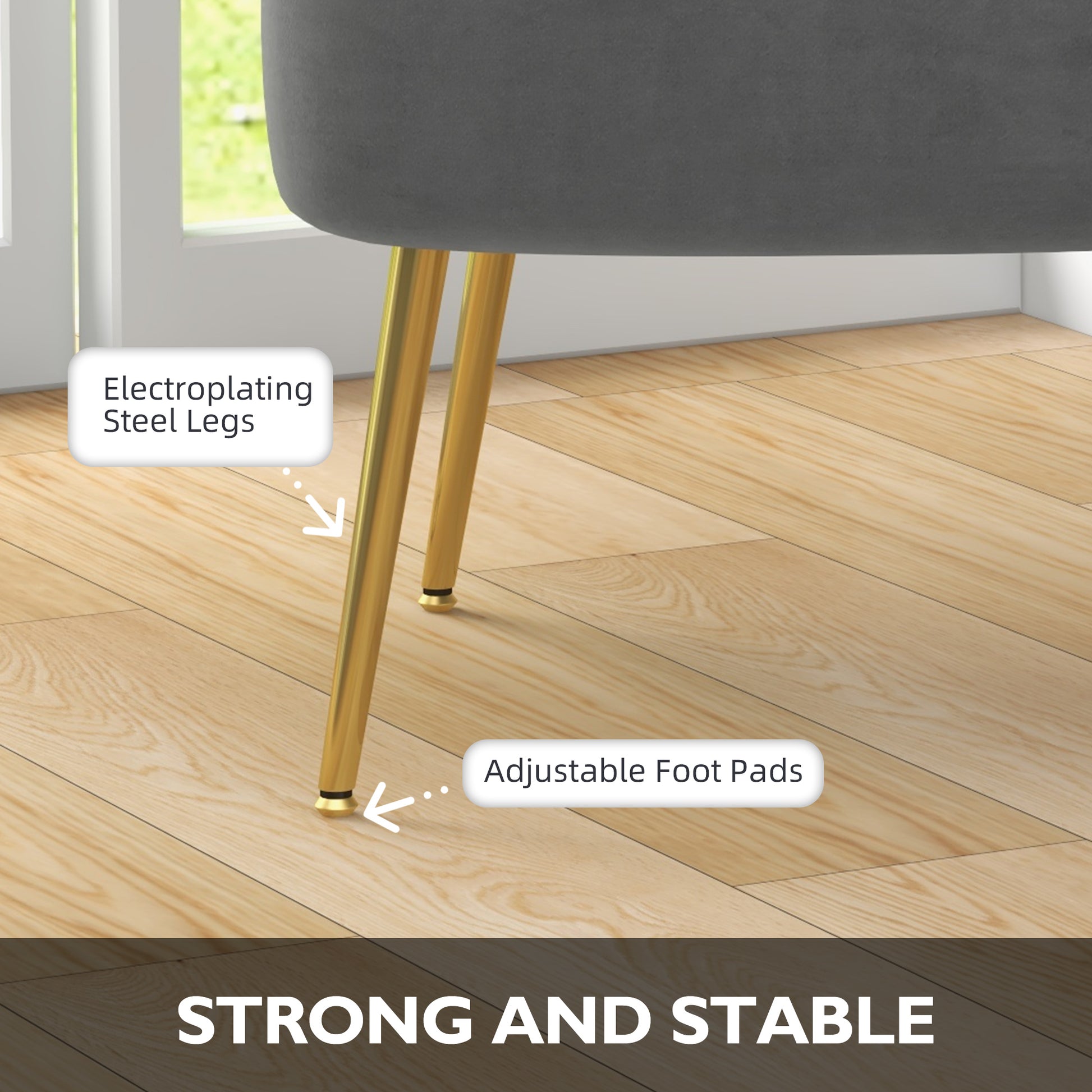 These two HOMCOM vanity chairs bring elegance and comfort to wherever they stand. Tub shaped, armless and in a smooth curved shape, these are modern designs, given a glam edge with the velvet-feel upholstery and gold coloured legs. The large seat and backs are filled with thick sponge for plenty of comfort, with the high backs for support. No arms mean plenty of sitting room. Leisure chairs are complete with supportive metal legs.