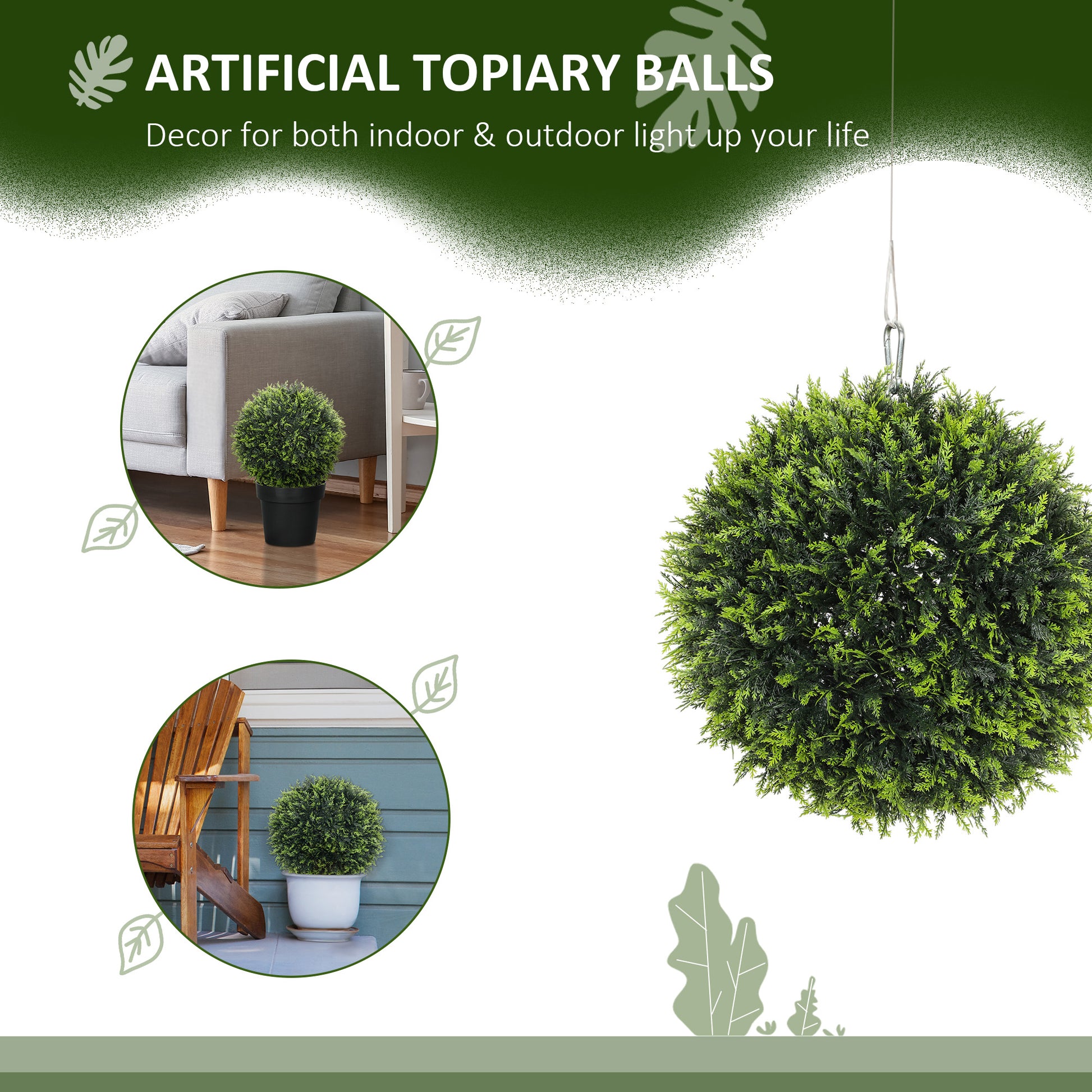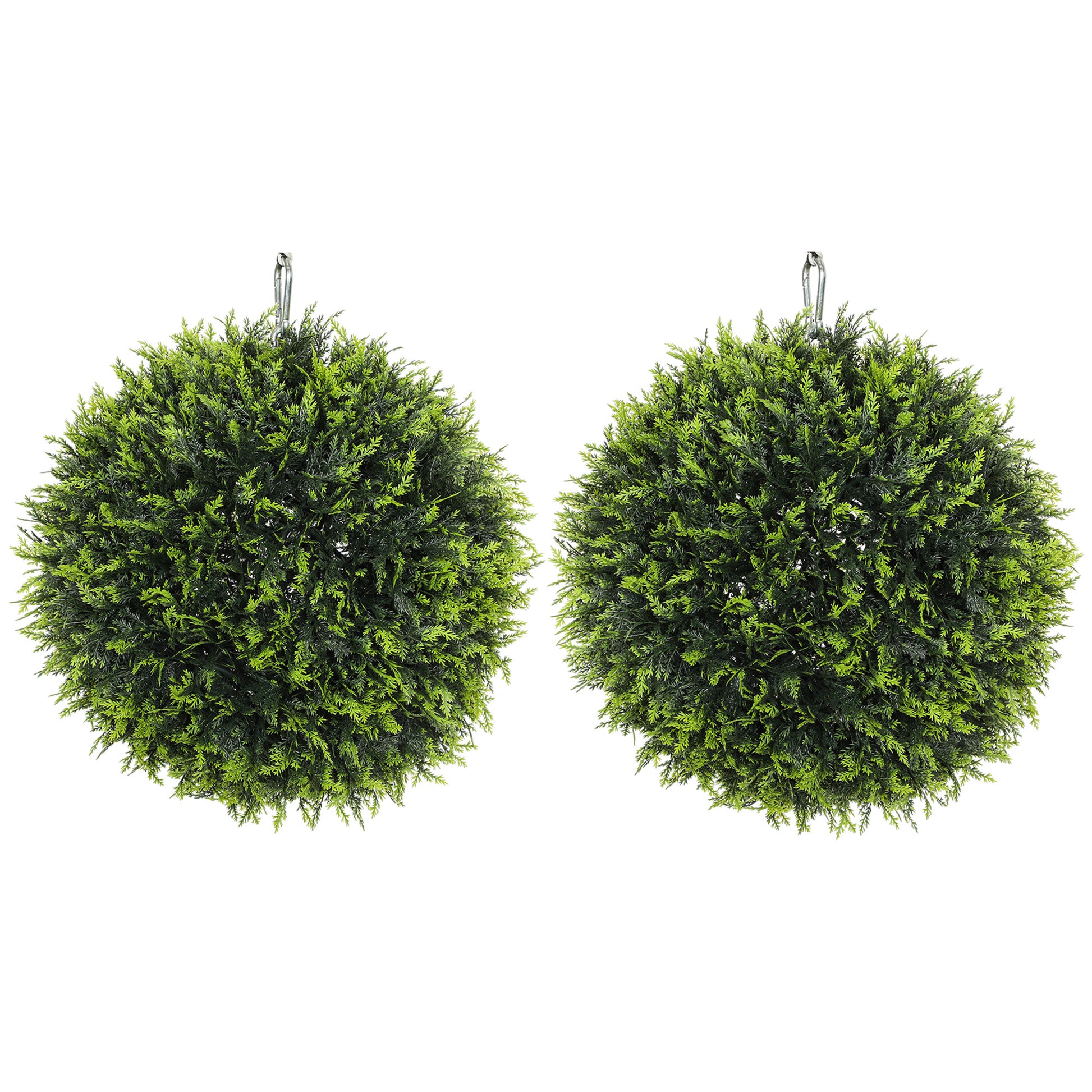 Transform any space with the HOMCOM artificial plant topiary balls, a charming set of two faux cedar designs boasting 680 vibrant leaves each. These fake plants maintain their lush hue year-round without any upkeep, making them a delightful addition to homes, offices, or outdoor areas. Enjoy the simplicity and beauty of maintenance-free greenery with these versatile artificial cedar topiary balls.