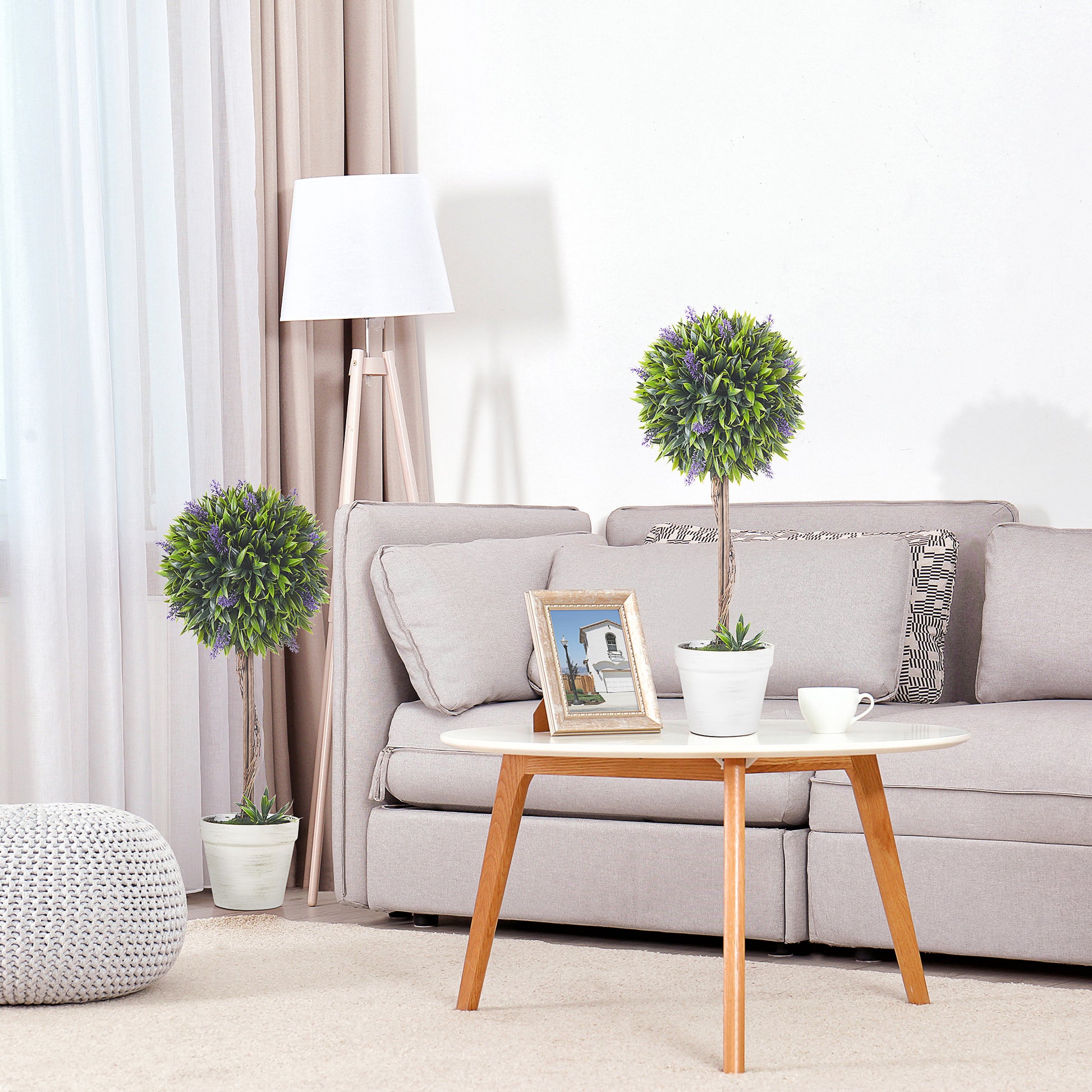 HOMCOM Set of 2 Decorative Artificial Plants Ball Trees with Lavender Flowers in Pot Fake Plants for Home Indoor Outdoor Decor, 60cm