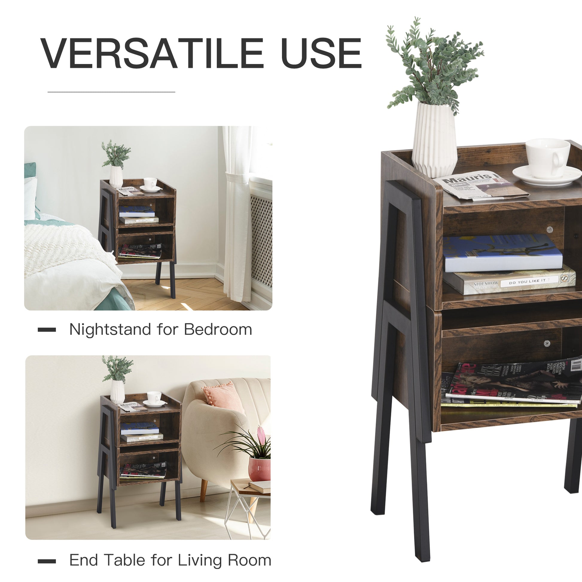 Set Of 2 Industrial Stacking Retro Style Side Tables Stacking Duo w/ Compartment Shelf Steel Frame Stylish Unique End Bed Tables Home Furniture