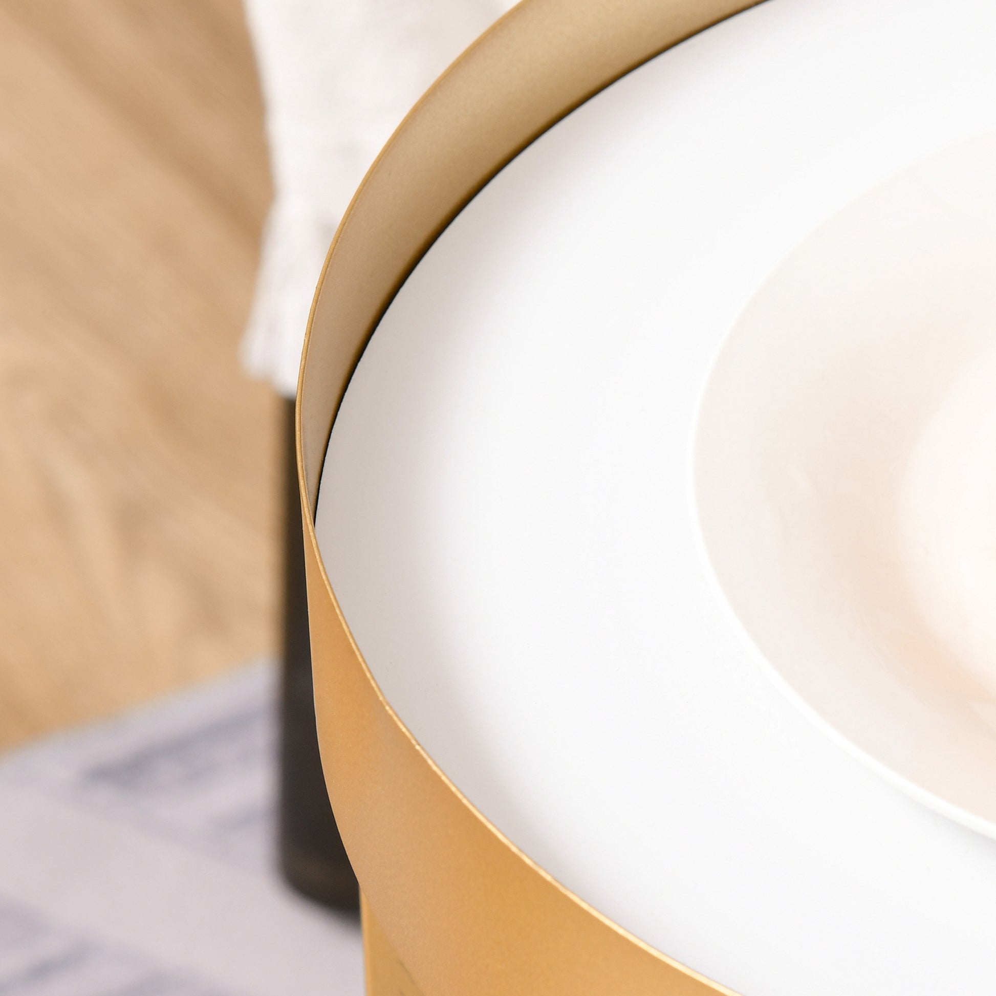Enjoy this beautiful coffee table set from HOMCOM during your chat party or afternoon tea! The simple and fashion design with golden metal base and tabletop in marble color gives you an unforgettable visual enjoyment. Made of MDF board and metal, durable for prolonged use and easy to clean. When not in use, it is stackable for space saving. A functional and stylish table set adds a simple happiness for your home!