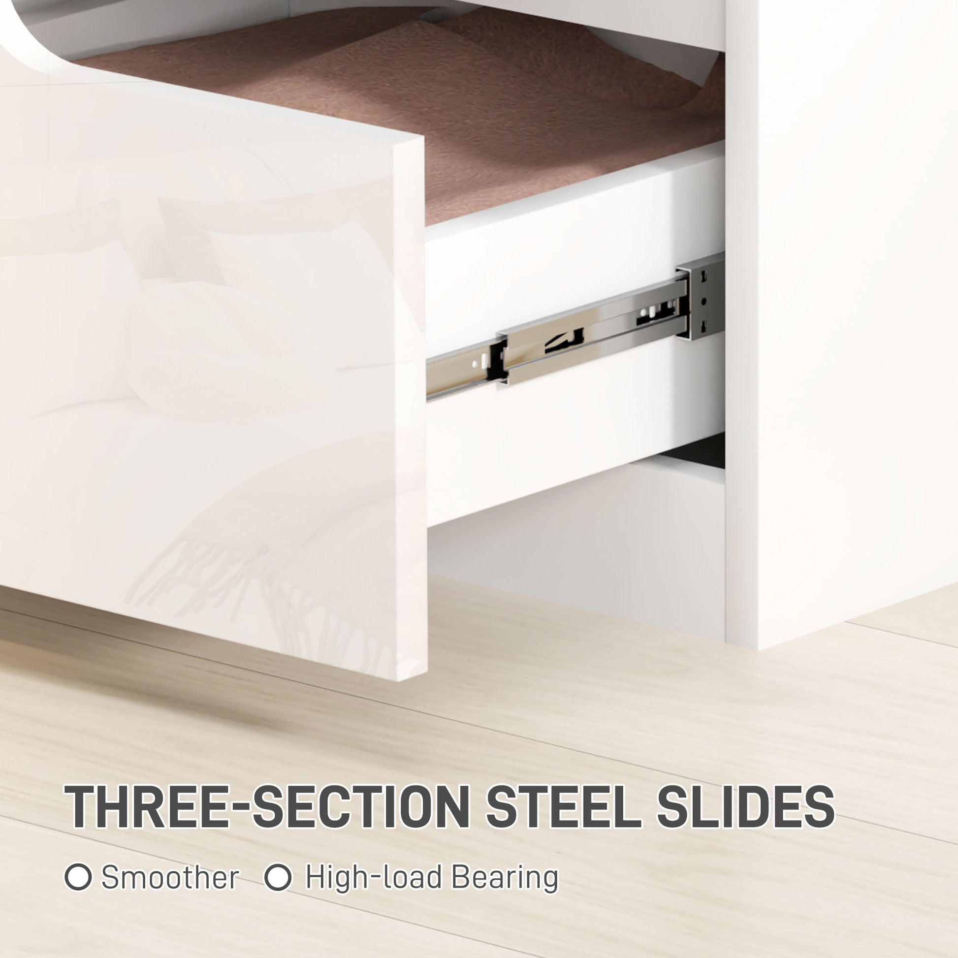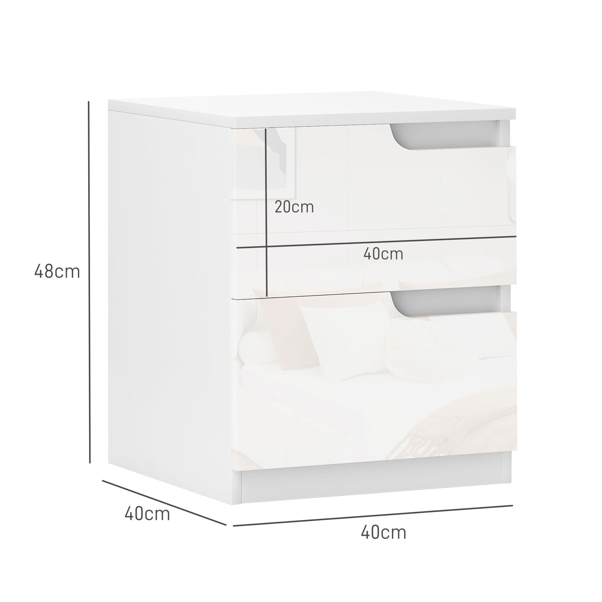 Your sleep bedtime companion - this HOMCOM nightstand. The white high-gloss finish, in a handle-less design makes it a sleek and modern addition to any room. The two drawers provide plenty of space for tucking away the essentials. Complete with foot pads to protect your floor from light damage.