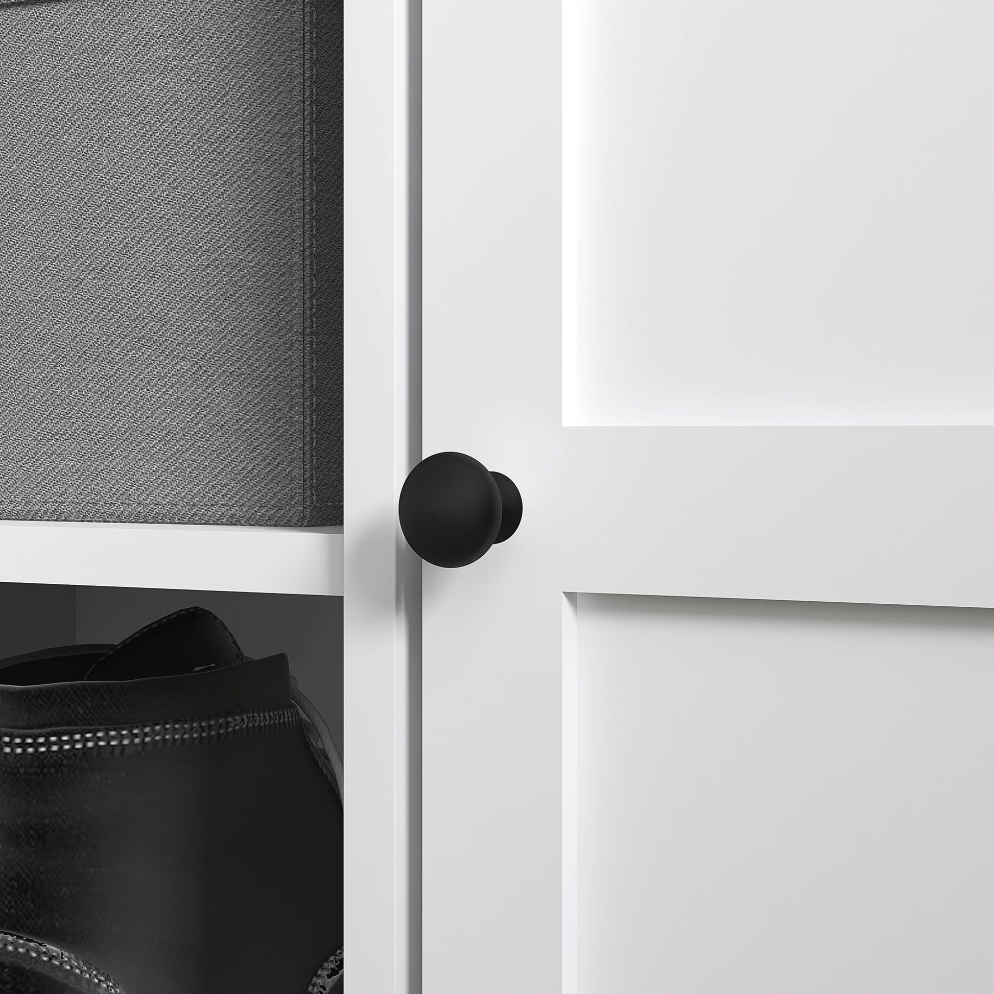 - Two cabinets and 2-tier shelf provide enough shoe storage